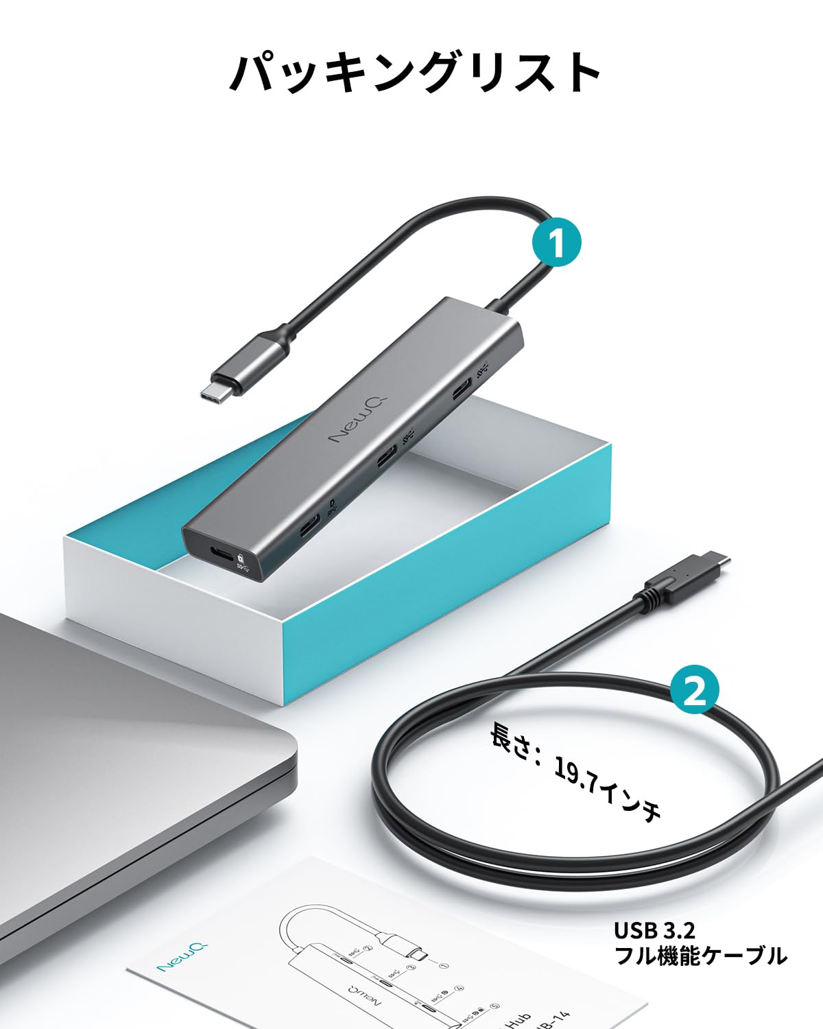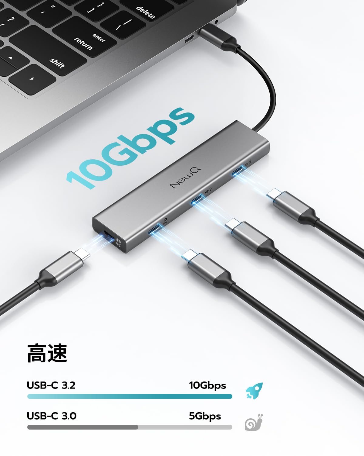 NewQ USB Cモニターハブ|USBC電源モニター・ポータブルモニター対応|USB 3.2 Gen2 10Gbps×2|4K@60Hz 映像+データ転送|PD充電・映像・データ対応 Type C|逆給電可能 多機能ドッキングステーション