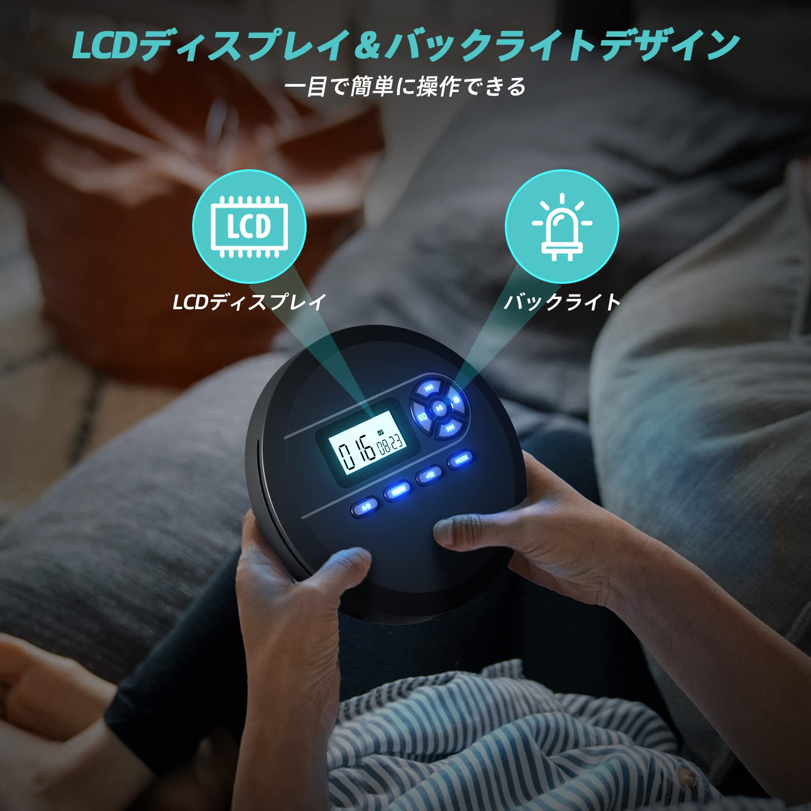①【スピーカー内蔵&FMトランスミッター対応CDプレーヤー】CDプレーヤーススピーカー内蔵しており、イヤホンで楽しむのはもちろん、イヤホンを外した状態でも音楽を楽しむことができます。尚、79.3MHz、88.5MHz、93.6MHz、103.0MHz、107.1MHzなのワイドFM送信周波数を対応しており、直接的に車内のFMラジオと接続し利用して車のスピーカーから直接に再生することができます。ご注意点:Bluetoothをサポートしていないので、これはBluetoothcdプレイヤーじゃないです。ご注意ください。
