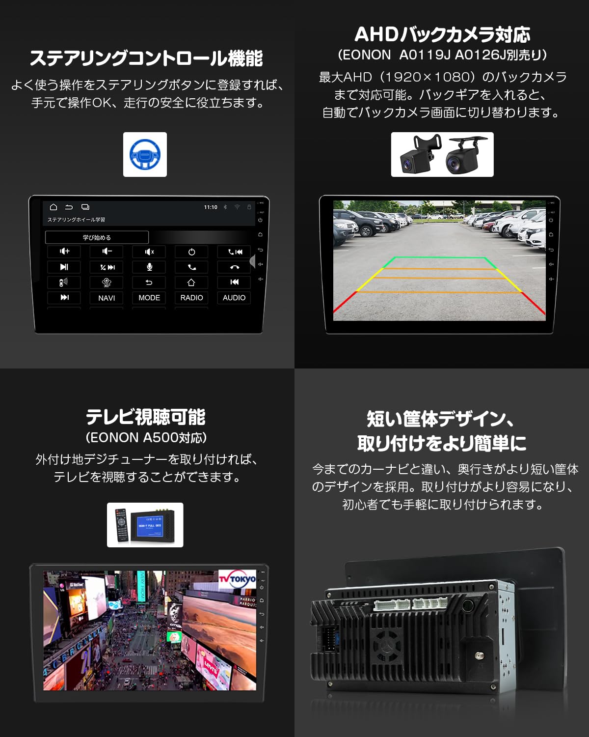 【新着商品】EONON 10.1インチディスプレイオーディオ 2DINカーナビ アンドロイドナビ Android13 8コア 2GB RAM+32GB ROM 無線CarPlay&Android Autoとミラーリング WiFi対応でYouTube Netflix等使用可能 1280*720 右ハンドル対応 日本専用 ワイドFM マルチウィンドウ Bulethooth5.0 バック連動(GA2197) | asaRulu0511