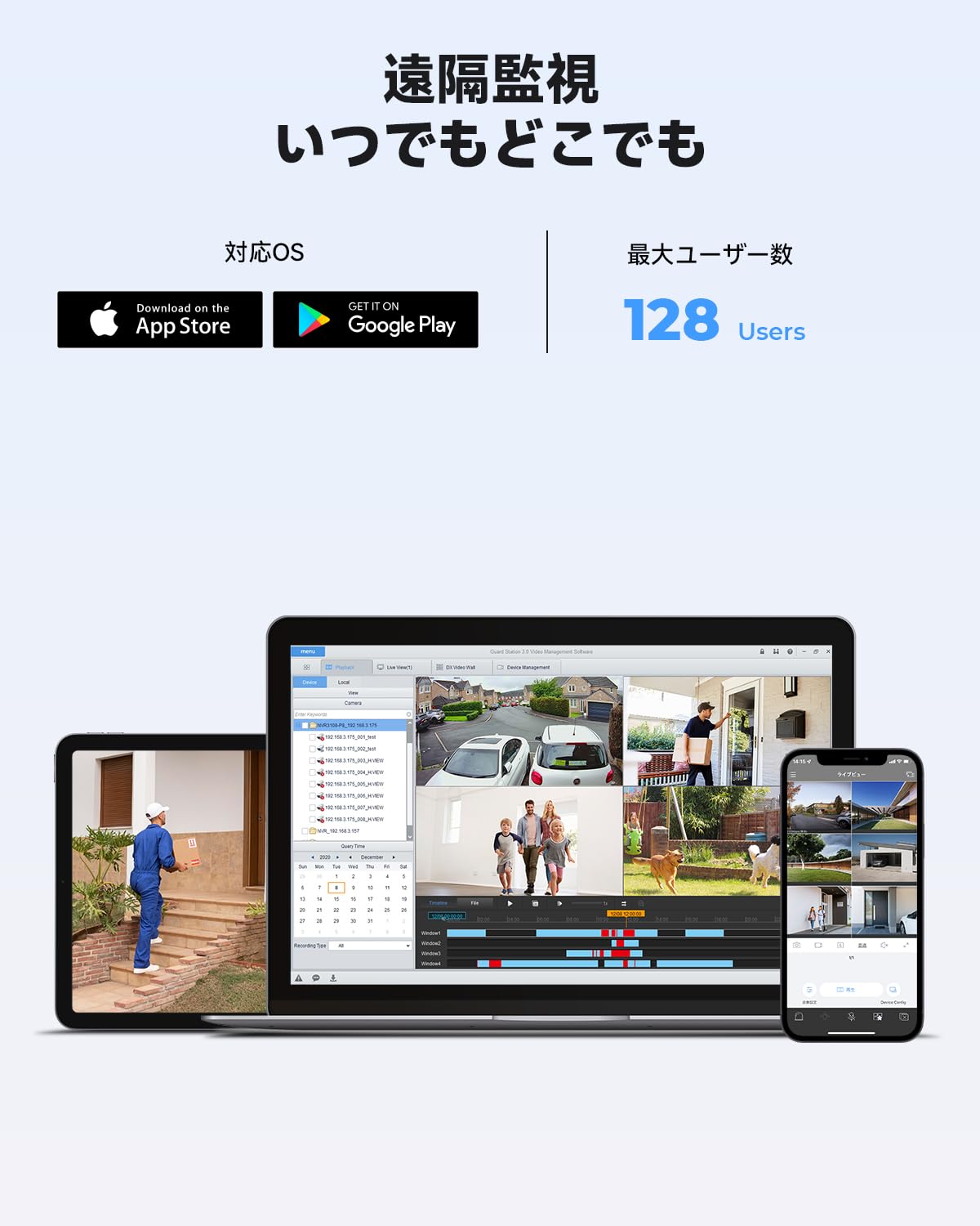 【POE給電/プラグアンドプレイ対応&広い視角&集音マイク搭載し】①POE給電可能:POEカメラがCat5e/6ネットケーブルで直接に給電が対応可能、とても便利です。プラグアンドプレイ対応で、カメラを接続してから、すぐに画像が映すようになります。②広い視角:4K Poeカメラは固定2.8mmレンズ、103°視野で、広い範囲で撮影します。(注:このカメラは固定レンズですので、PC側から方向を調整できません。)③防犯カメラ本体は高画質集音マイク搭載、防犯カメラを設置するだけで一緒に周辺の音声も記録することができます。何か事故や事件があった時に、証拠や状況の把握に大きな手がかりとなります。