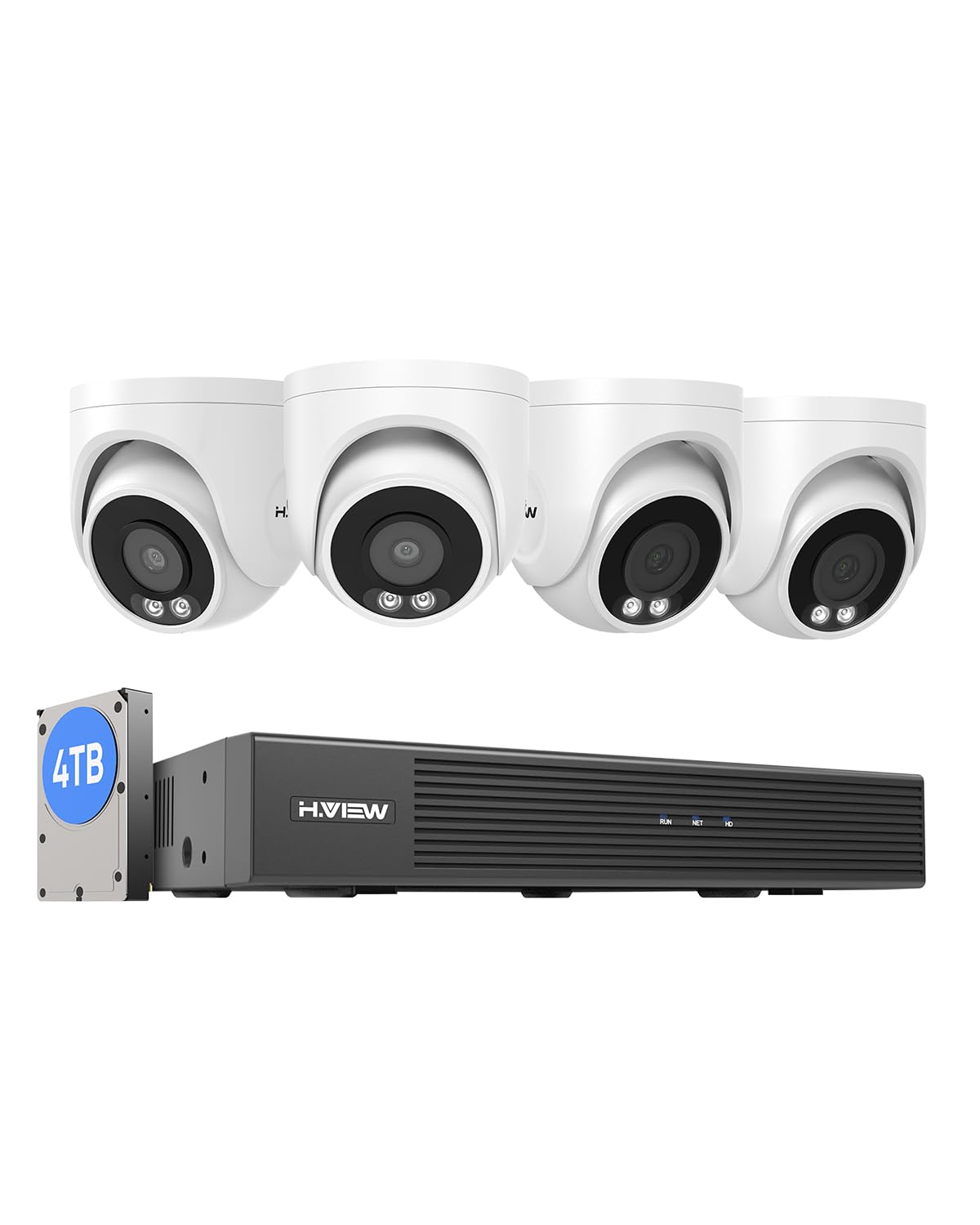 【新着商品】【4K画質・人体検知・発光威嚇】H.View 800万画素 ドーム型防犯カメラ 4台セット 有線 屋外 8MP PoE給電式 防犯カメラ 家庭用 人体検知機能付き 投光威嚇 音声録画 8ch H.265 4Kレコーダー 8台まで増設可 監視カメラセット poeカメラ IP66防水防塵 電源工事不要 スマホ/パソコン遠隔監視 プラグアンドプレイ(4TB HDD付き)