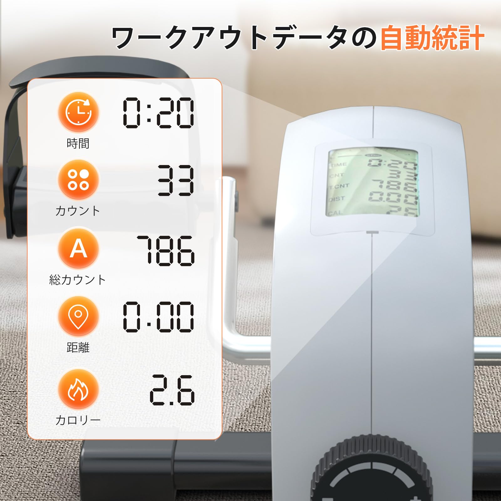 1️⃣ 調整可能: 抵抗ノブで負荷レベルを細かく調整でき、自分の体力や目的に合わせたパーソナライズワークアウトが可能です。内蔵モニターで時間、距離、消費カロリーをリアルタイムで確認でき、効果的な運動計画をサポート。さらに、ベルクロ付きストラップで長さを調整し、足にしっかりフィットすることで、安定感のある快適なトレーニングを実現します。