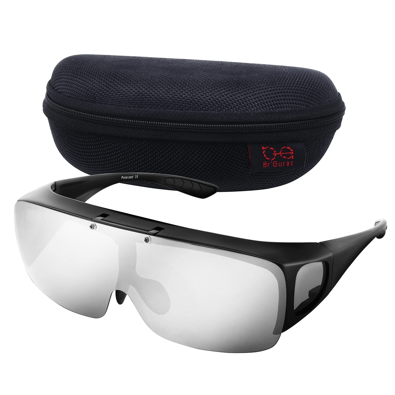 [Br'Guras] サングラス スポーツ 運転用サングラス メンズ 偏光 UV400 紫外線カット メガネの上から掛け 跳ね上げ式 防風防砂 自転車/釣り/ランニング
