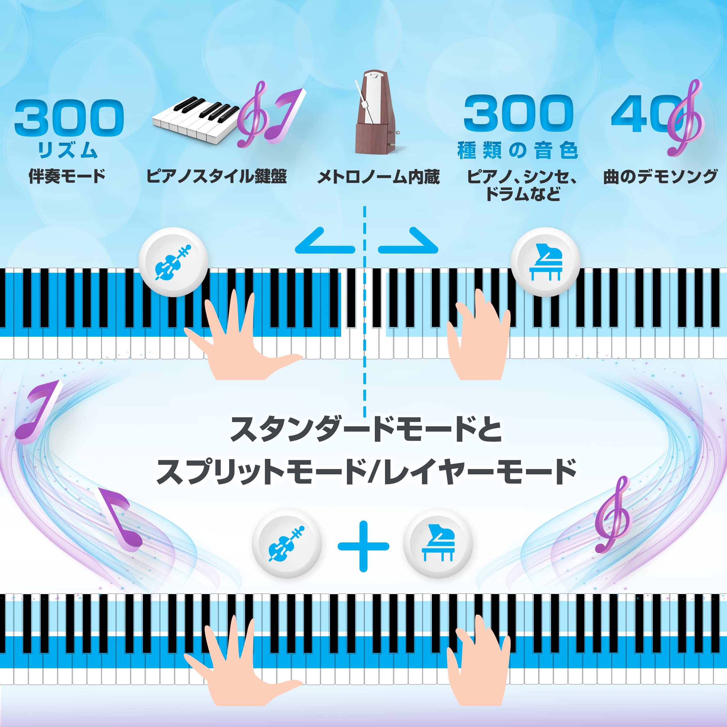 最高の弾き心地:61鍵盤ピアノスタイル鍵盤・スピーカー内蔵で練習に最適