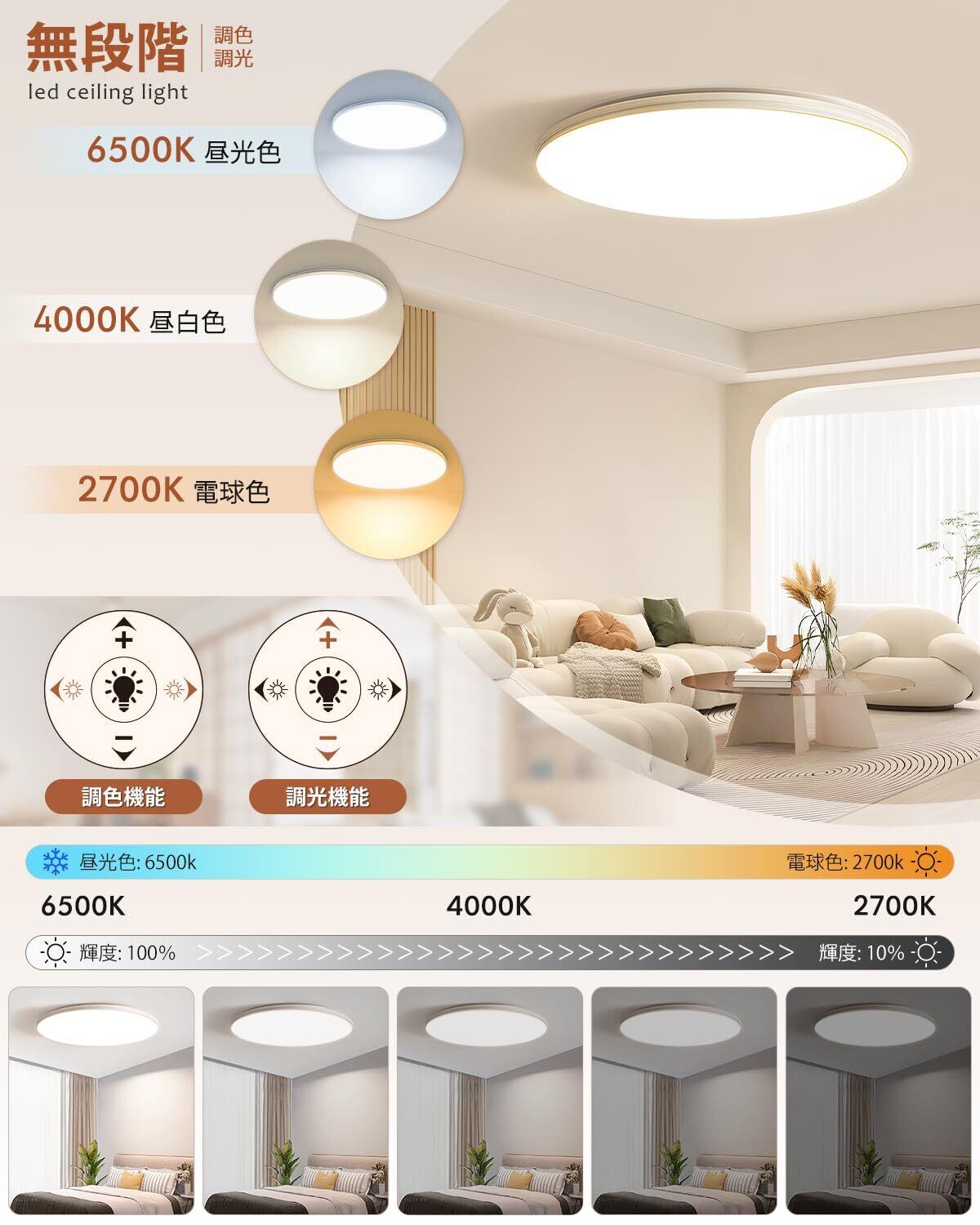 【2025年業界最新版高輝度LEDシーリングライト|2 面発光・柔らかい明るさ|省エネ&長寿命】最新版のLEDシーリングライトは高品質なLEDチップを採用されており、目に優しい光は明るくて色合いも自然です。より明るい、やさしく綺麗な照明効果を実現します。また、ライトの光は柔らかくし、ちかつきないので、目が疲れないです。目にやさしい光で、目によく保護することができます。特別な2面発光のデザインで、「メインライト」と「間接照明ライト」の上下発光の設計はちらつきがなく部屋全体が均一に明るく照らされます。また、「正面のメインライトだけ点灯」「裏面の間接照明だけ点灯」「両面同時に点灯」の3種類の点灯モードで、気分やシーンに合わせた部屋の雰囲気を自由に変えます。作業時には明るいメインライトの白色光、リラックスタイムには間接照明の暖かい色に調整でき、用途に応じて光を変えられるのが魅力です。ledシーリングライトは従来の蛍光灯器具と比べと同じ光量で、消費電力が低く、使い続けるほど電気代がお得ます。明るさをキープしながら、消費電力を抑えられるようになりました。