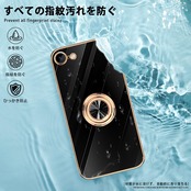 iPhone SE ケース iPhone第3世代 ケース iPhone第2世代 ケース iPhone8/7 ケース リング 耐衝撃 360°回転 スタンド機能 車載ホルダー対応 アイフォン SE3/SE2 ケース 一体型 携帯ケース 保護カバー レンズ保護 ストラップホール付き 4.7インチ (ブラック)