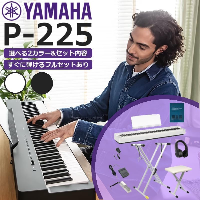 【特価商品】【ヘッドホン&サスティンペダル付き】【P125α後継機種】YAMAHA ヤマハ 電子ピアノ 88鍵盤 Pシリーズ P-225 (単品 WH ホワイト)