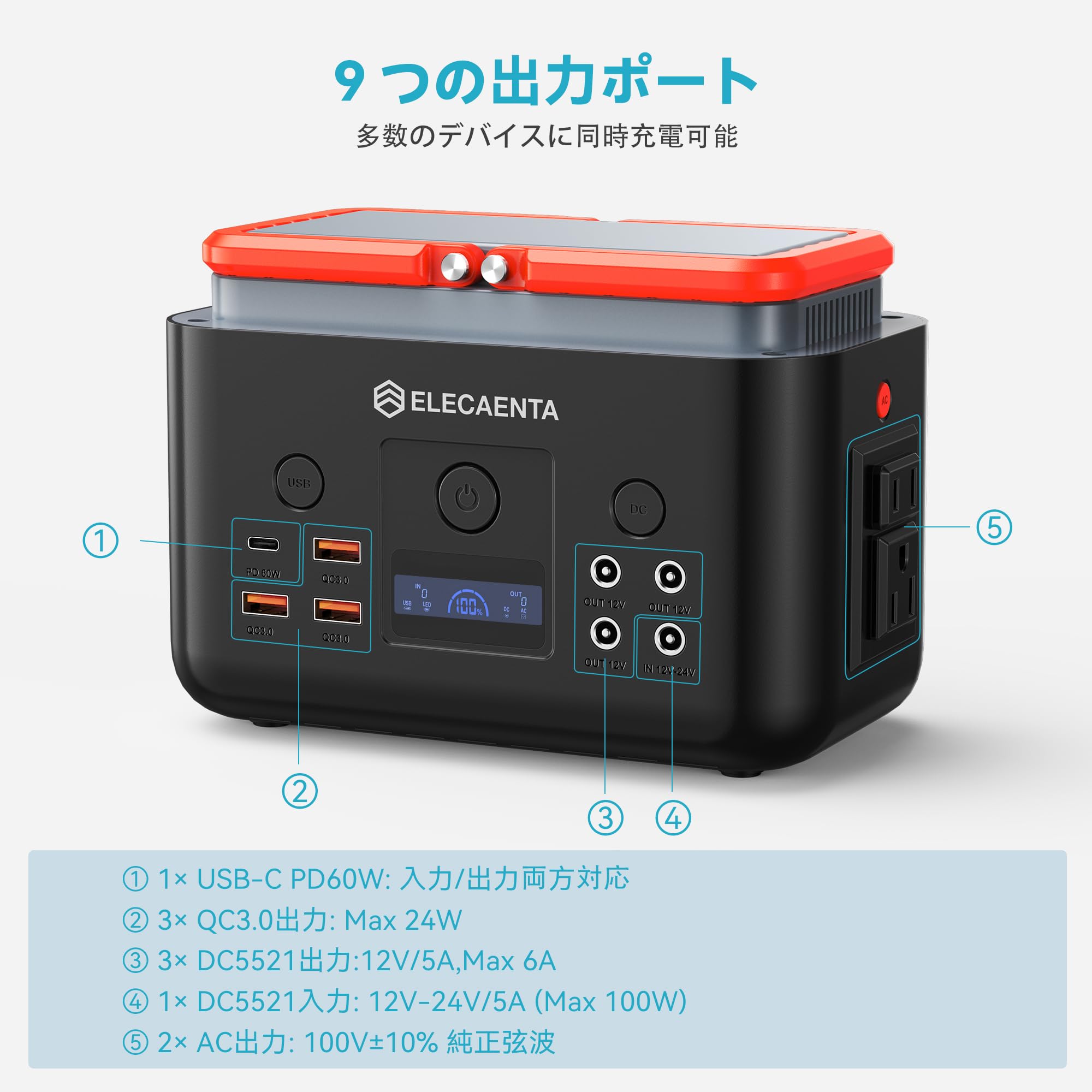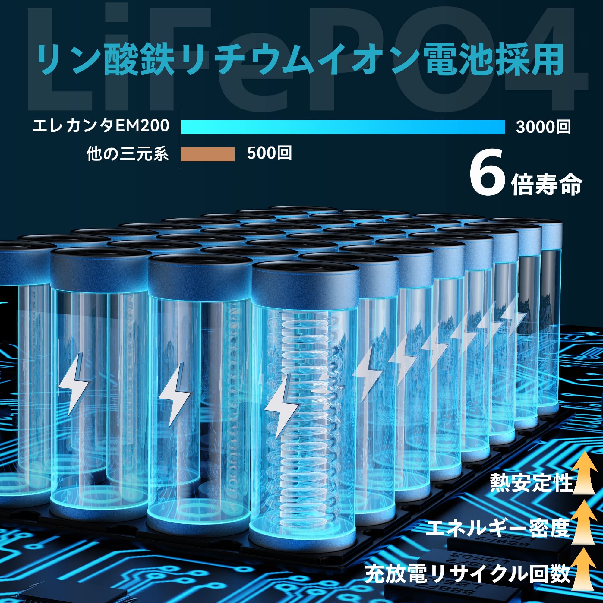 ELECAENTA ポータブル電源 超小型 200Wh 6倍寿命 リン酸鉄 AC200W(ピーク400W) 純正弦波 超軽量2KG PD60W入出力対応 ソーラー100W充電 100V 50Hz/60Hz 簡易UPS 非常用電源 キャンプ 地震 台風 停電 車中泊