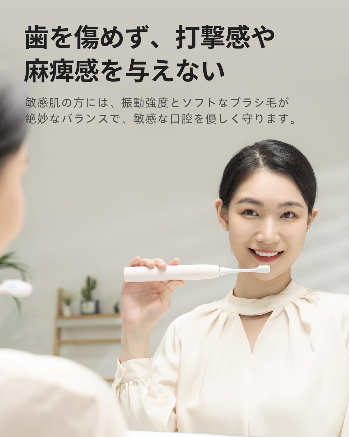 【効果的なブラッシングで健康な歯を実現】 毎分39,720回の高周波超音波振動で、歯の表面と歯間の汚れをしっかりと除去。強力なマグネット浮遊超音波モーターで、歯垢や食べかすを効果的に取り除き、口腔内を清潔に保ちます。家族全員での使用にも最適です。