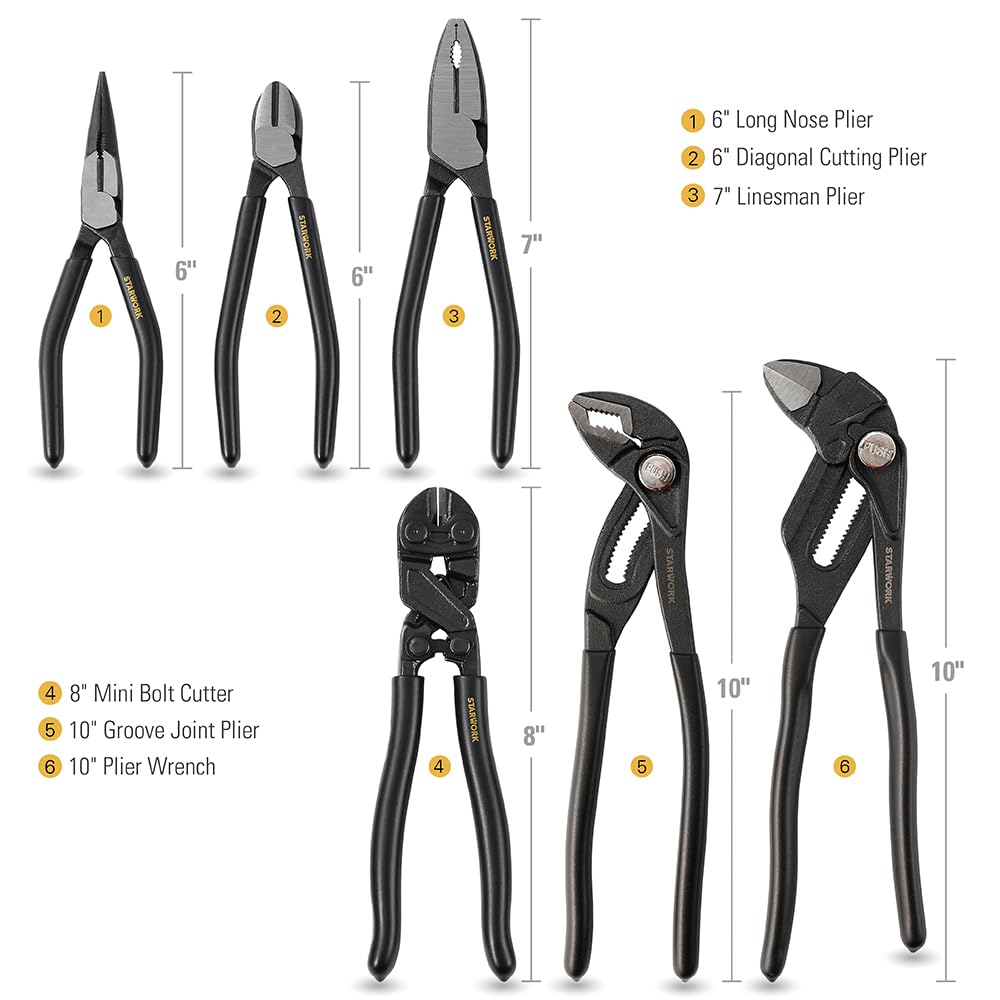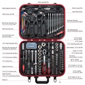 【充実した付属品】このツールセットには、ソケット、コンビネーションレンチ、エクステンションバー、スピナーハンドル、クイックリリースラチェット、ドライバー、ペンチ、プライヤーレンチ、ミニボルトカッター、ウォーターポンププライヤー、六角レンチなどが含まれており、必要なすべての作業に対応できます。機能性が非常に充実しており、さまざまな状況で使用可能です。整備用ツールとして必要なものがすべて揃っており、効率的に作業を進めることができます。