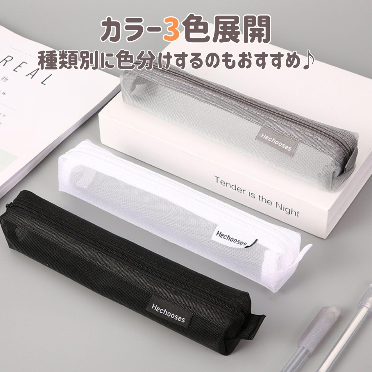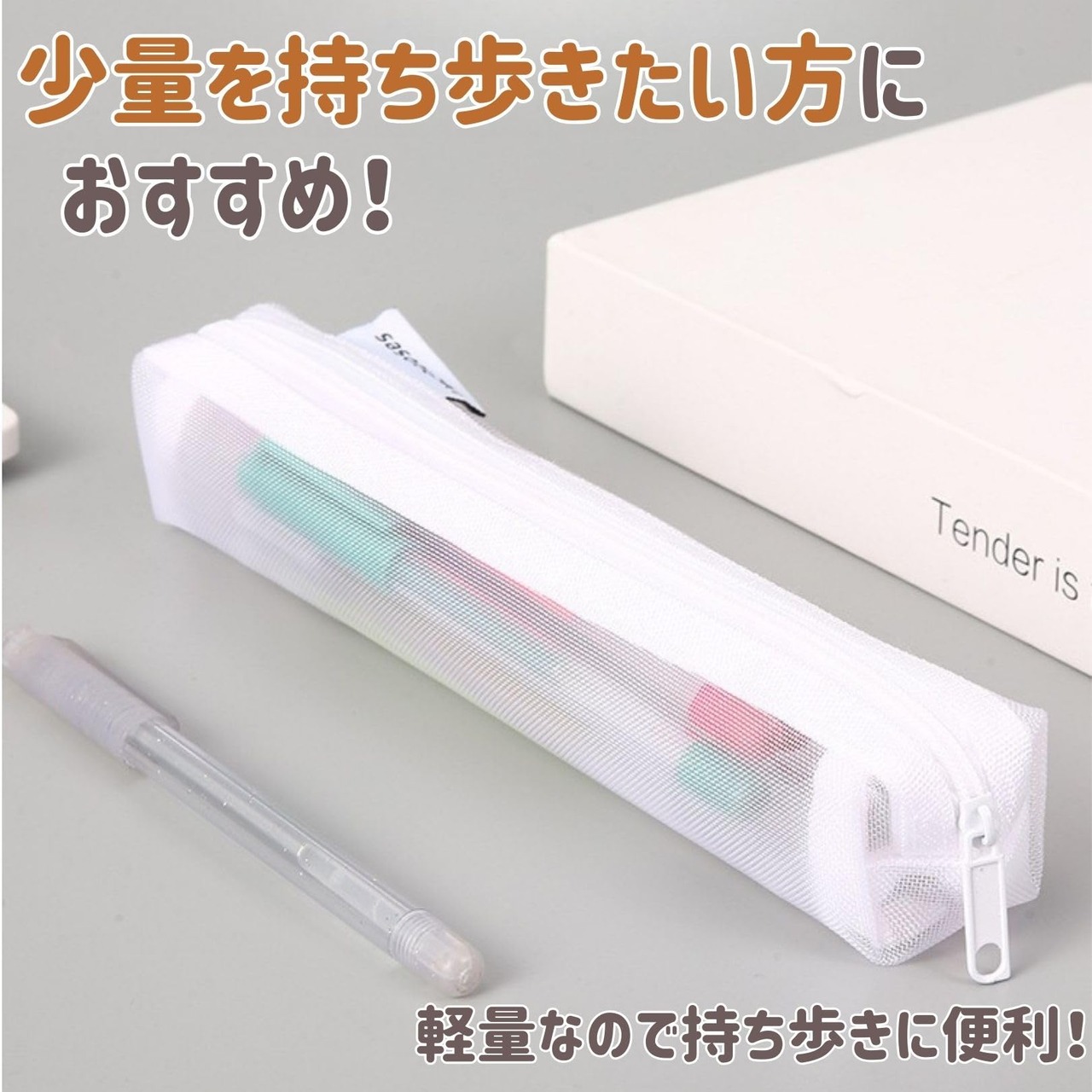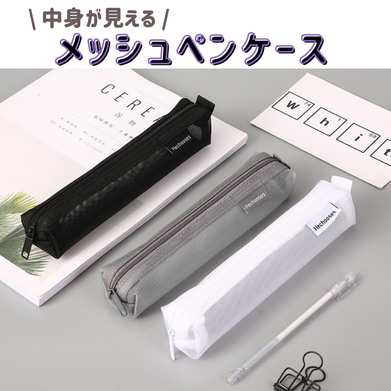 【 中身が見える 】シンプルなデザインのスリムタイプのメッシュペンケースです。年齢を問わずどなたにもご利用頂ける多色展開です。 シースルー素材で中身を一目で確認できるため、文房具をすぐに見つけられます。忘れ物がないかチェックも簡単です。