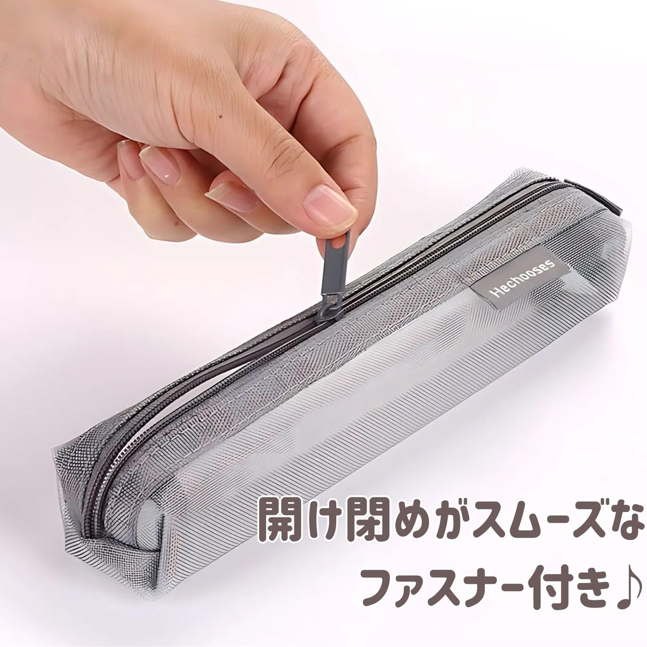 Copeflap ペンケース メッシュ 筆箱 スリム シンプル 透明 シースルー (グレー)