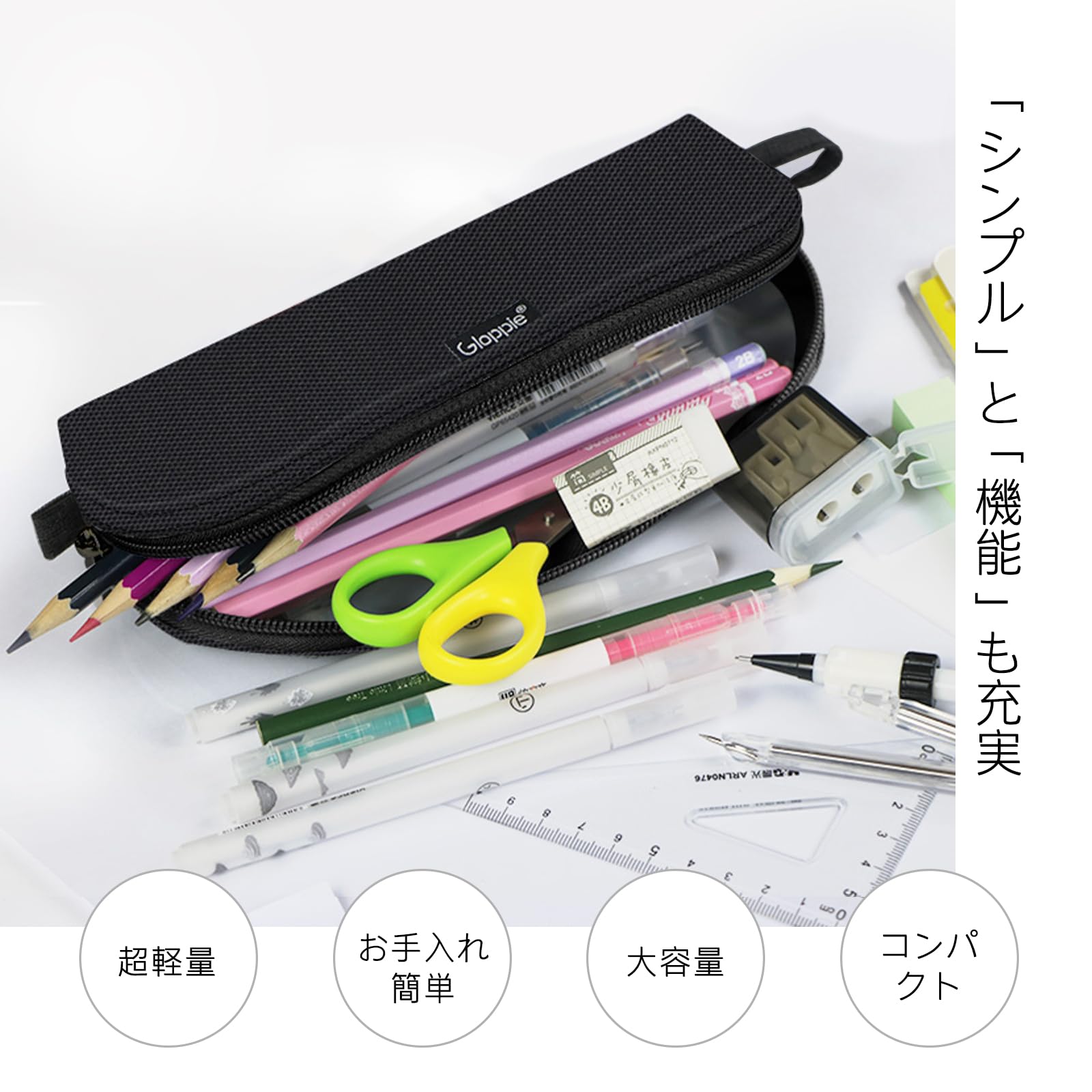 【数量限定】Gloppie 筆箱 大容量 単品 7色展開 筆入れ おしゃれ ペンケース スリム ふでばこ ボットタイプ pencil case 可愛い ペンシルポーチ シンプル 学生 高校生 オフィス 文房具 通勤 大人 社会人 ブラック メンズ 使いやすく ギフト プレゼント 新学期支援