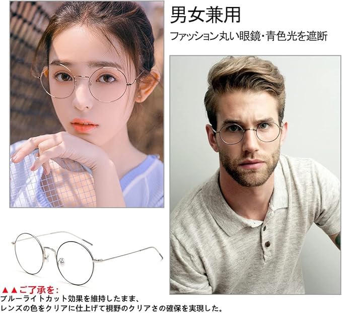 [Dollger] ブルーライトカットメガネ 伊達メガネ 15g超軽量 メガネ 度なし 丸めがね uvカット ブルーライトカット ゴールド