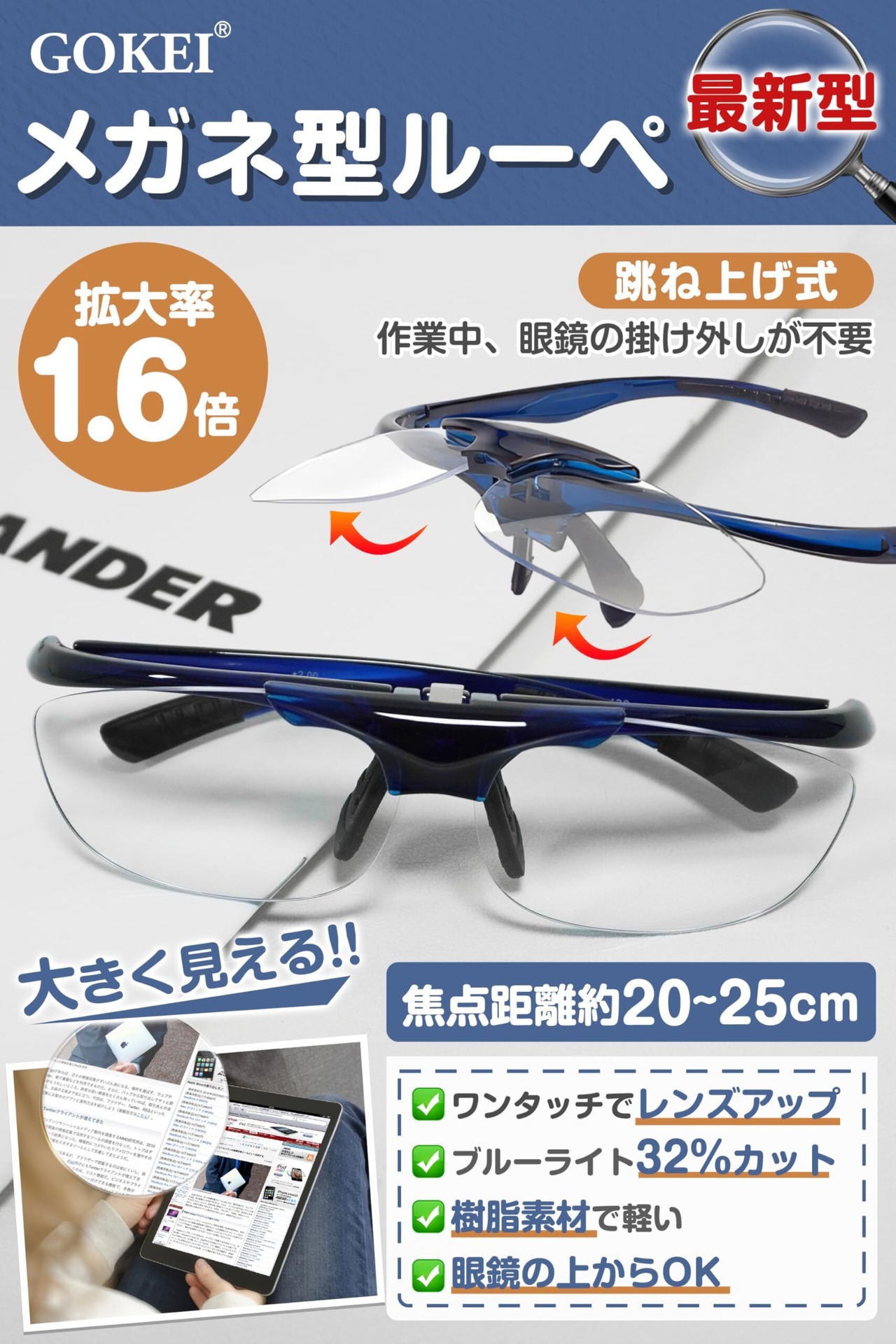 GOKEI ルーペメガネ 跳ね上げ 最新型 眼鏡型ルーペ 跳ね上げ式ルーペ ブルーライトカット ルーペ メガネ 拡大鏡 めがね メガネ型ルーペ ハネアゲ 大きく見える メンズ 眼鏡 女性用 細かい作業 輻射防止 ルーペ型眼鏡 拡大 かくだい鏡メガネ プレゼント ギフト メンズ レディース ブラック 1.6倍