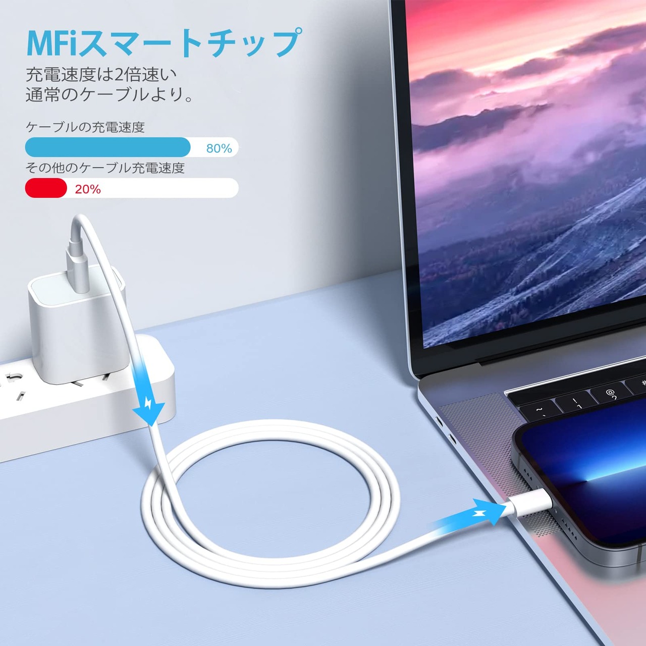 【安心のMFi認証品】:弊社のiphone 充電ケーブルオリジナルC89Lightningコネクタを採用しておりMFi認証済みなので、iPhoneやiPadの安定した充電や同期ができ、iOSのアップロード後でも継続使用可能です、安全性は業界トップクラスです。安心して充電することができます。