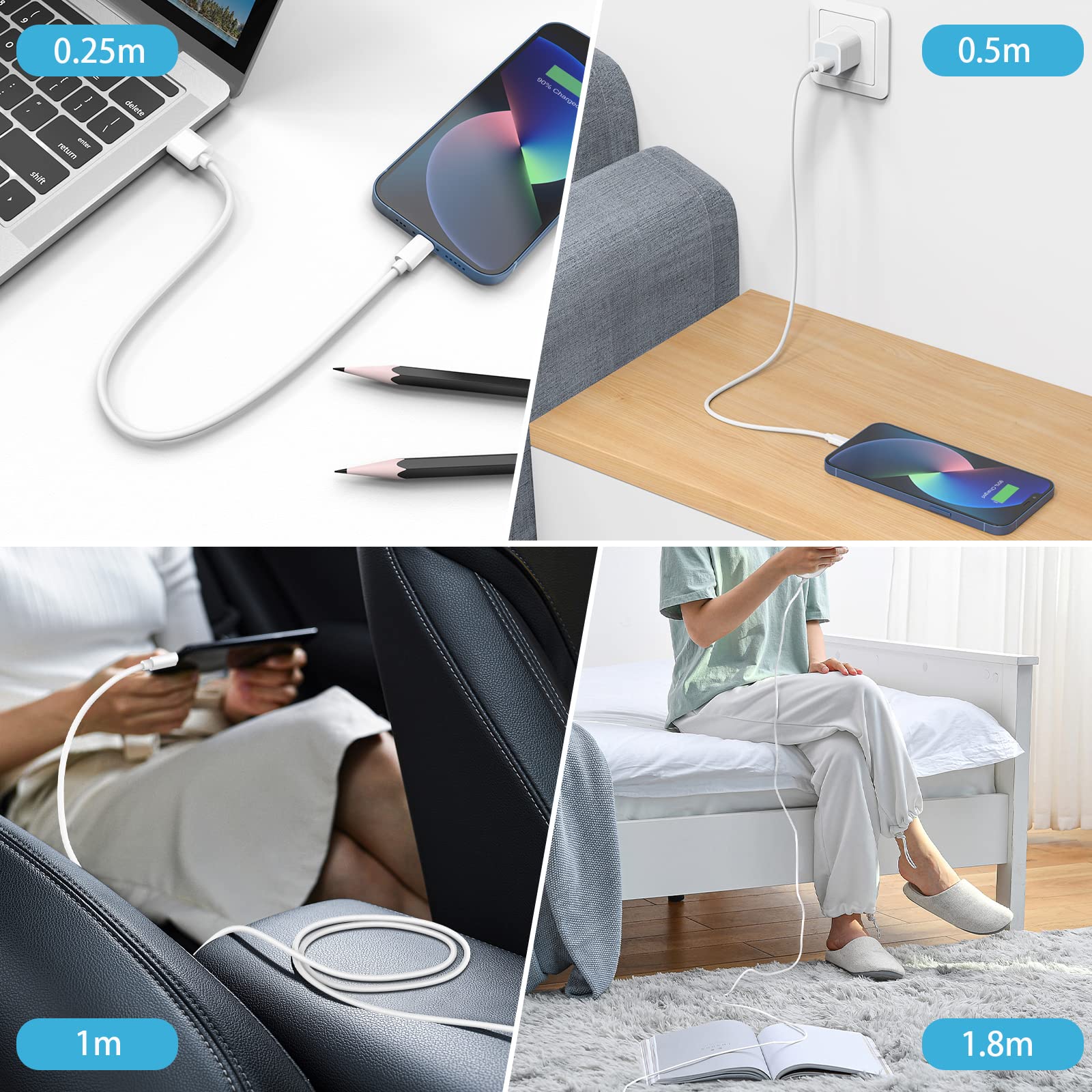 Cablex iPhone 充電ケーブル【0.25m/0.5m/1m/1.8m】4本 ライトニングケーブル 急速lightning ケーブル 急速充電 iphone 充電コード ケーブル アイホン 断線防止 超高耐久 iPhone 14/13/13 Pro/12/11/X/8/8plus/ iPad 各種対応