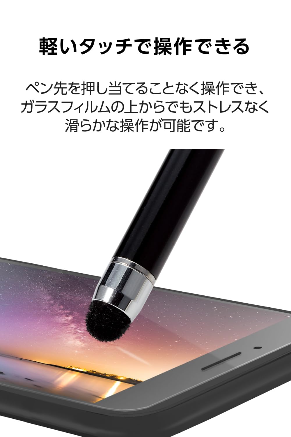 【2022最新】エレコム タッチペン スタイラスペン 【iPad/iPhone/Android スマホ・タブレット各種対応】 超感度 充電不要 高密度ファイバーチップ採用 クリップ付 ストラップホール付 ブラック PWTPC02LBK | asaRulu0511