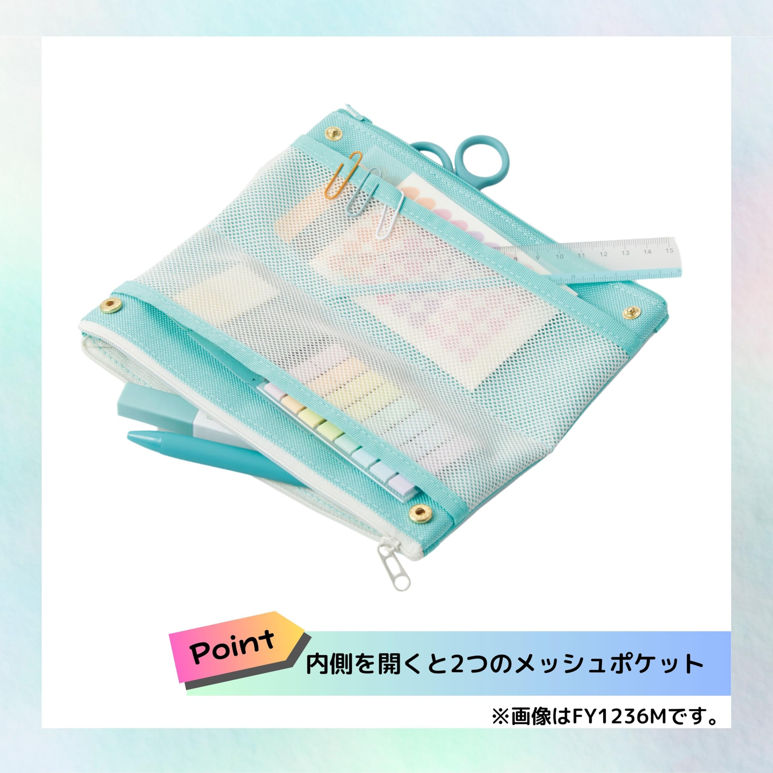 中身が見えて仕分けできるスリムなメッシュ素材のペンケース
