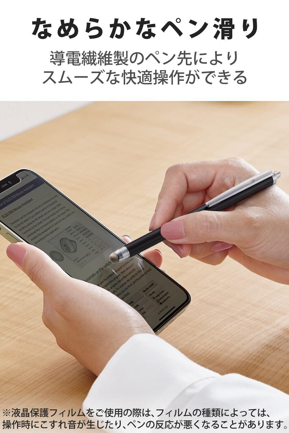 ※液晶保護フィルムを使用の際は、フィルムの種類によっては、操作時にこすれ音が生じたり、ペンの反応が悪くなったりします。