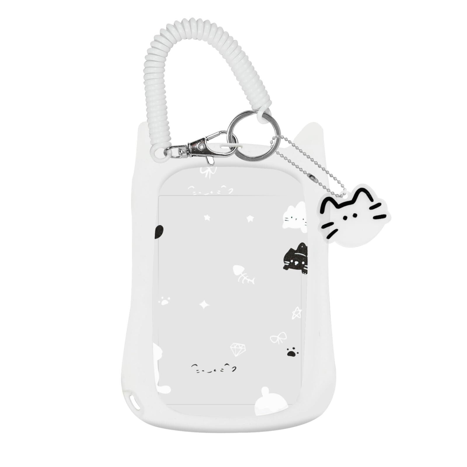 [seimeinoki] パスケース 定期入れ 両面透明 トレカケース トレカホルダー かわいい 猫の耳型 カードケース 手首着用型 3インチのカードを収納可能 社員証 ICカード 推し活グッズ