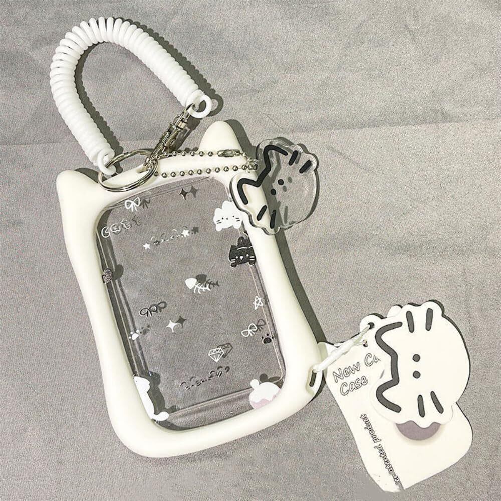 【在庫処分】[seimeinoki] パスケース 定期入れ 両面透明 トレカケース トレカホルダー かわいい 猫の耳型 カードケース 手首着用型 3インチのカードを収納可能 社員証 ICカード 推し活グッズ | asaRulu0511