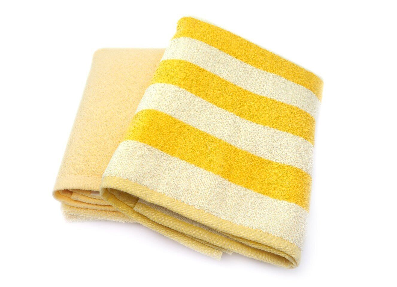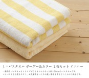 Kosugizen ミニバスタオル ボーダー&カラー イエロー 50×100㎝ 小さなサイズのバスタオル デイリーユース 2枚セット ZG-502-2YE