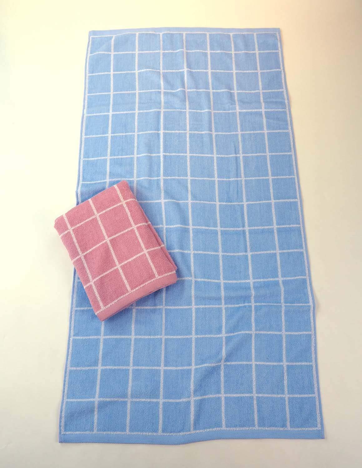 Kosugizen バスタオル グラフチェック 2色各1枚入 60×120㎝ 乾きやすい薄手タイプ デイリーユース 2枚セット ZG-6803-2