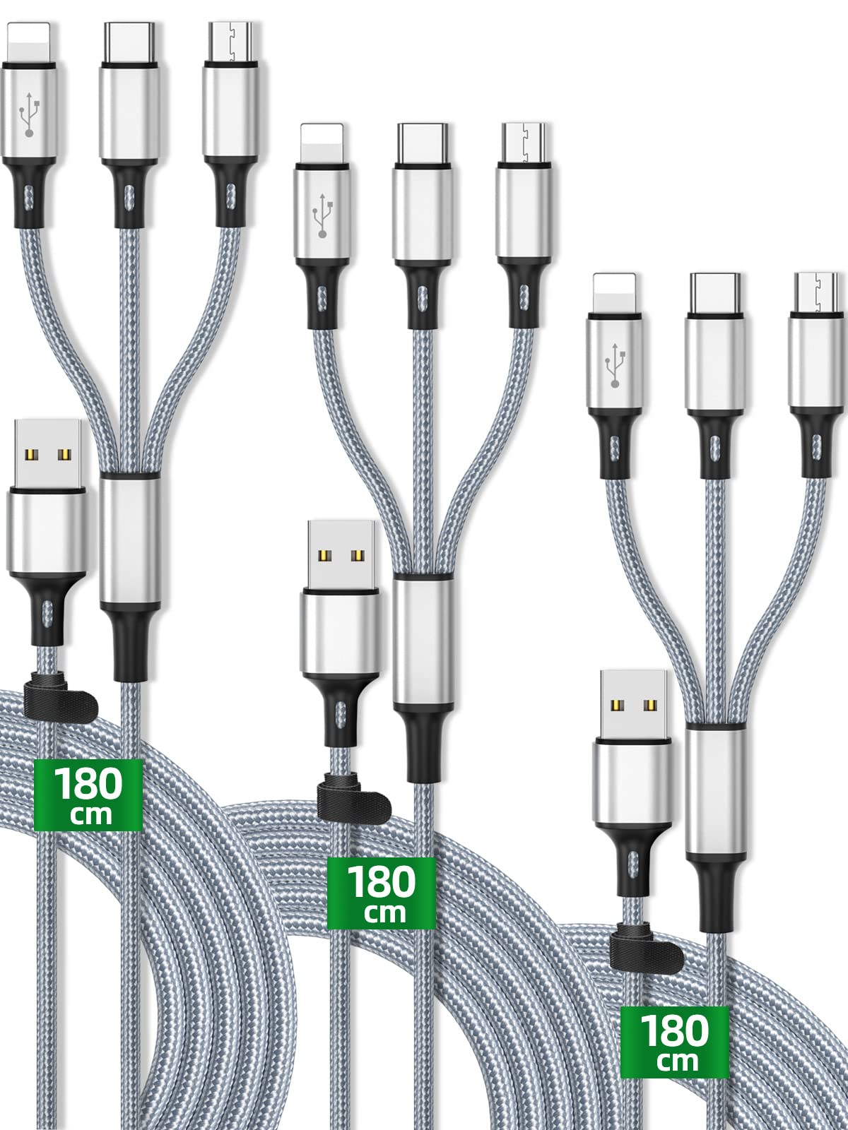 【在庫処分】【3本セット】 3in1 充電ケーブル 急速充電 1.8m、マルチ充電ケーブル iPhone/Micro USB/USB Type-Cに対応、 USB ケーブル 3 in 1 スマホ タブレット 同時充電 マルチ USBケーブル 断線しにくい 頑丈。3A急速 充電 ケーブル 3in1 USB 充電ケーブル マルチ 充電ケーブル 3in1 Micro USB/Type-C/Lightning対応 | asaRulu0511