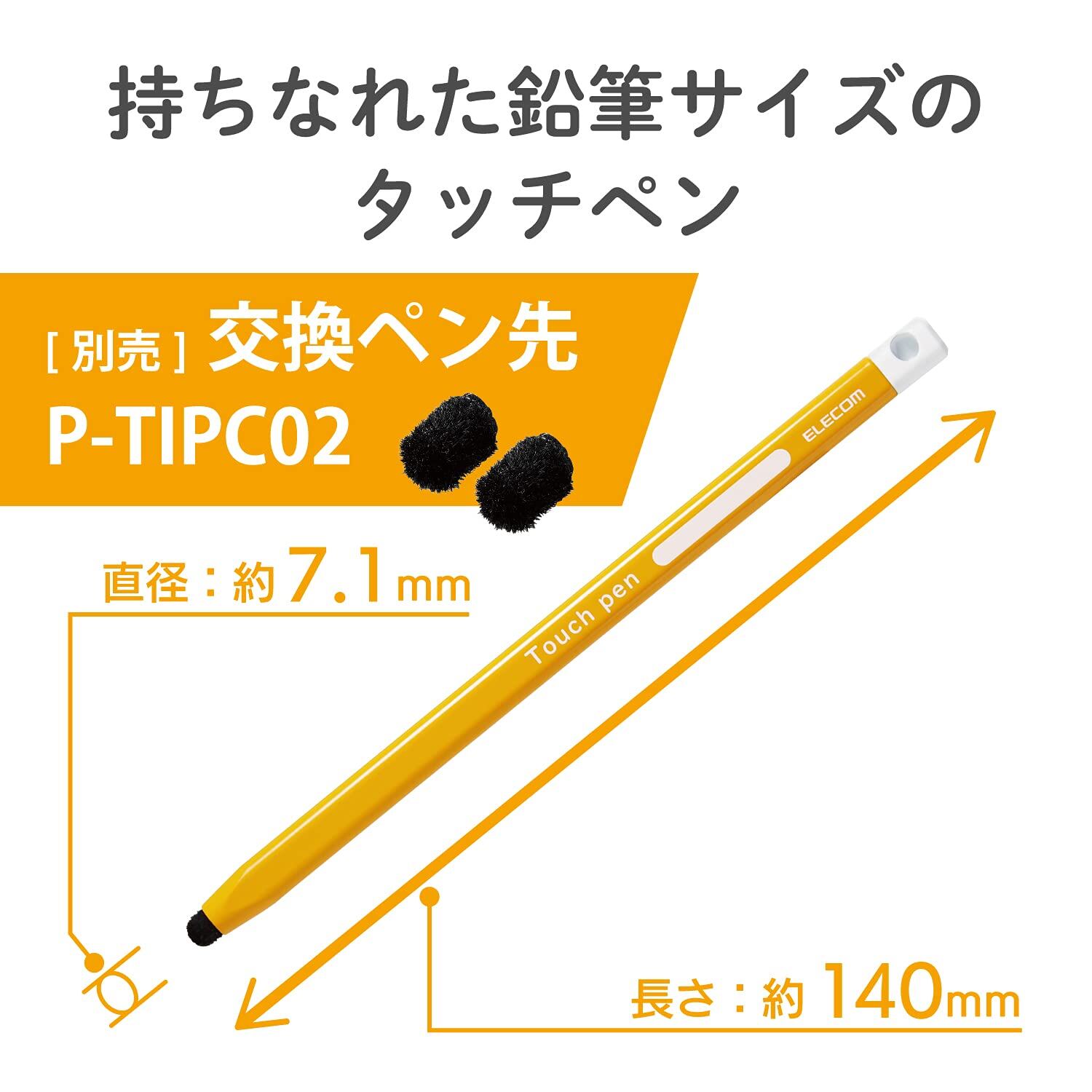 エレコム タッチペン 鉛筆型 三角 細軸 超感度タイプ (スマホ・タブレット用) イエロー P-TPEN02SYL
