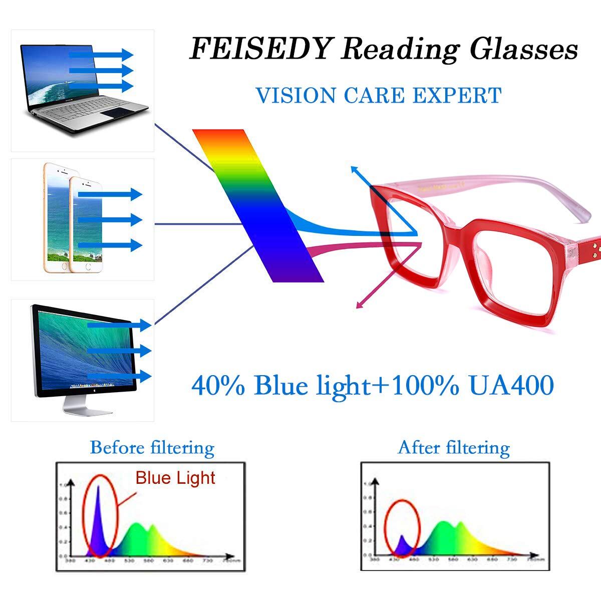 優れた素材:FEISEDY 軽量 ヴィンテージデザイン 太めのスクエアリムフレーム老眼鏡があなたをよりスタイリッシュに。 優れた品質の TR フレーム、完璧な質感、快適な着用感