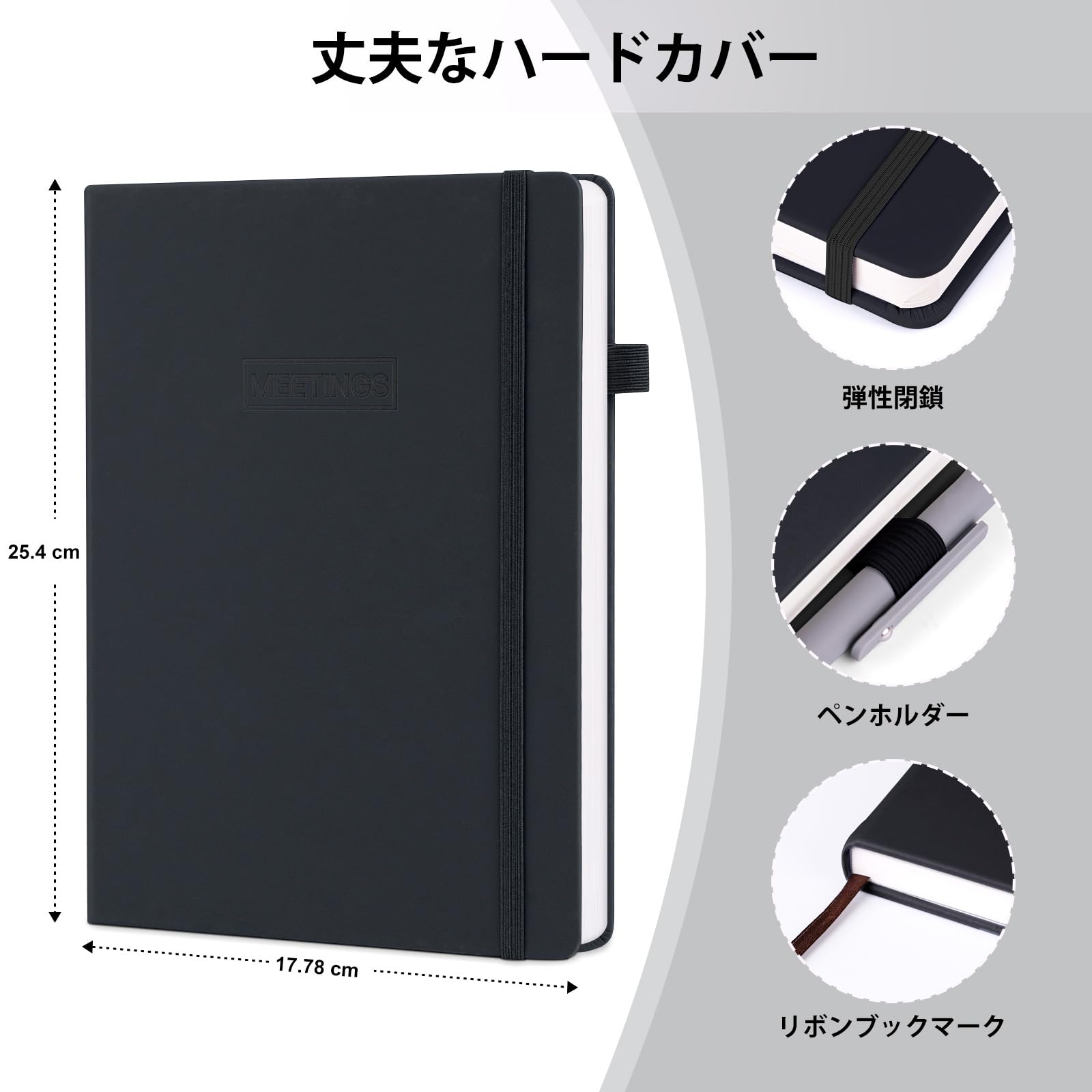 WEMATE 会議ノート 打ち合わせ 議事録 ハードカバー ビジネス メモ帳 B5 200ページ 仕事ノートミーティングノート 日記帳 仕事効率化 ブラック