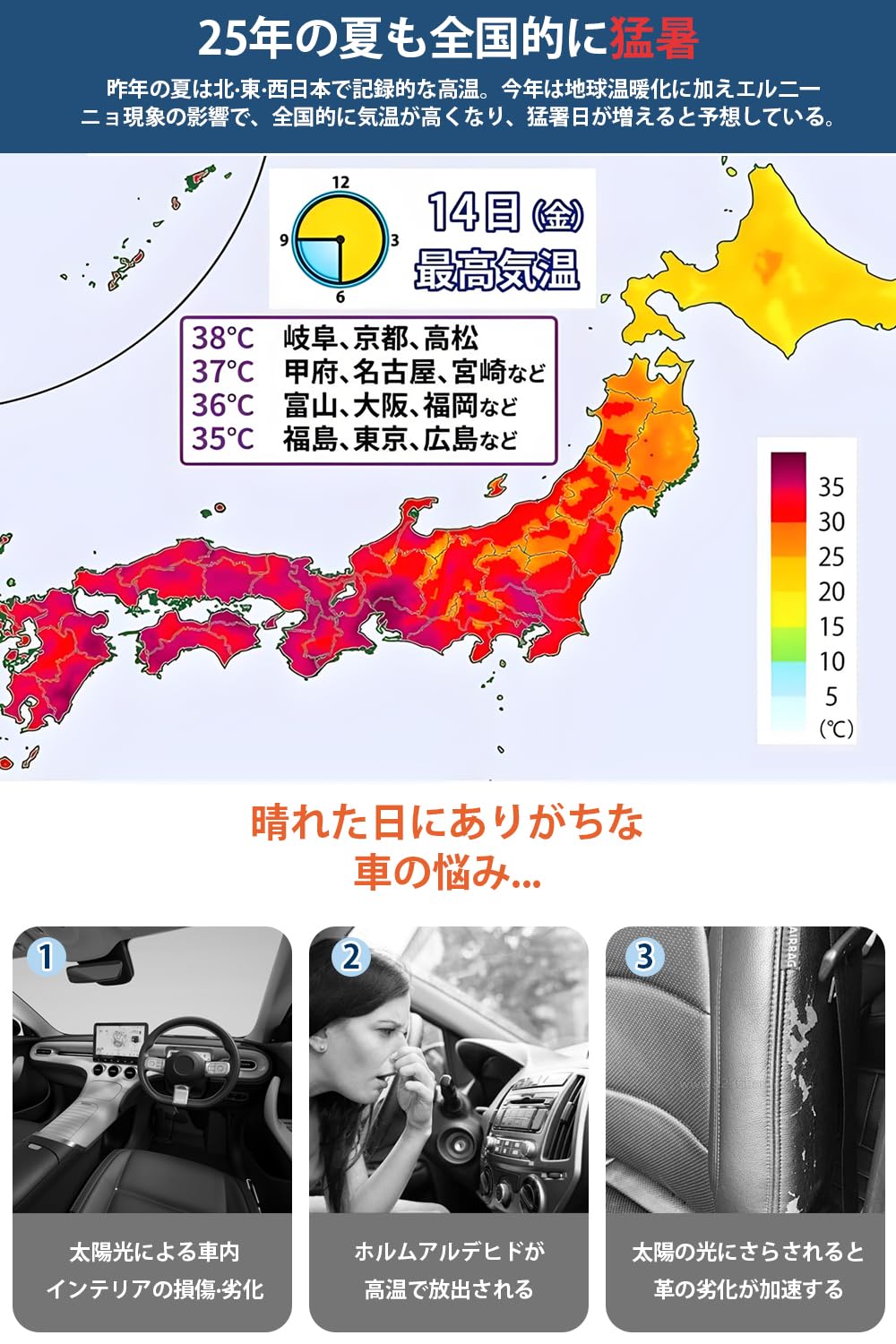 【バックミラー露出、露先保護カバー】サンシェードの上部に切り込みがあり、バックミラーやドラレコに干渉しない、駐車際に正常に撮影できて、後方の状況も確認可能です。また、各傘骨の末端にレザー保護カバーを使用しており、車の内装を傷つけずにフィット、さらに人を傷つけることもありません。