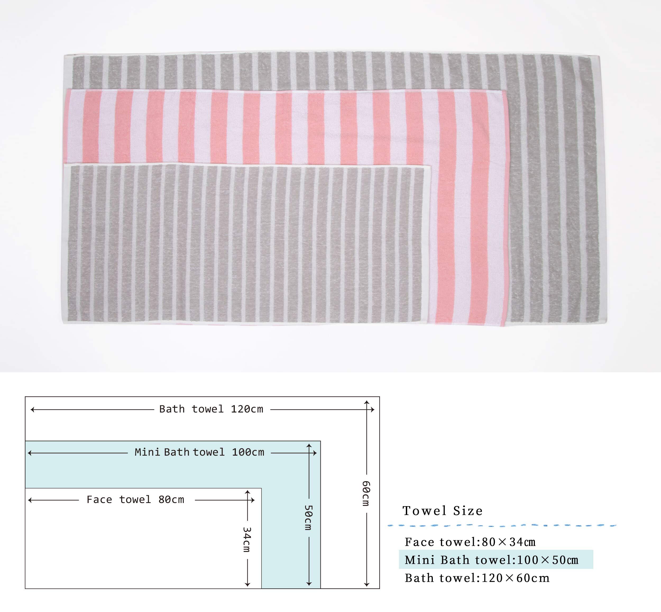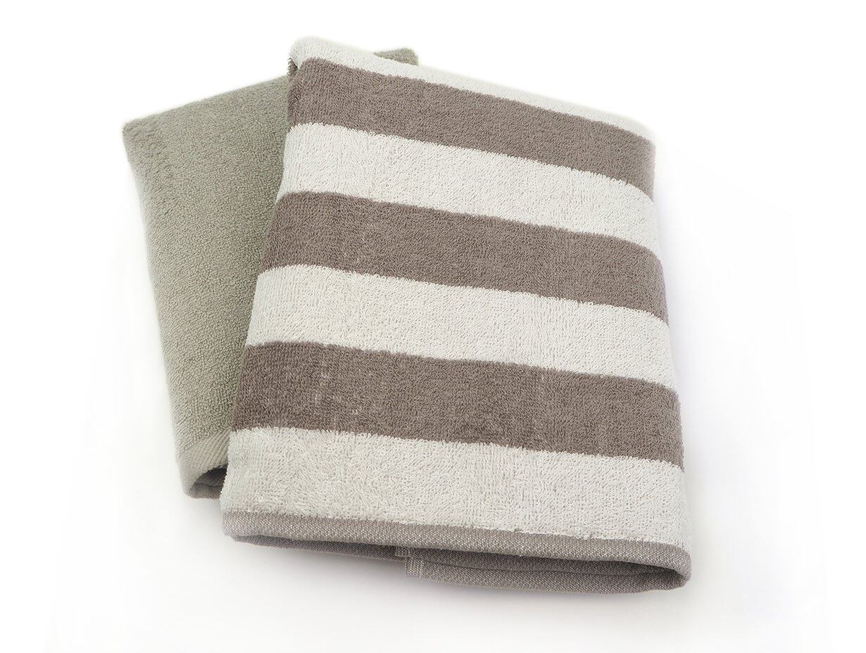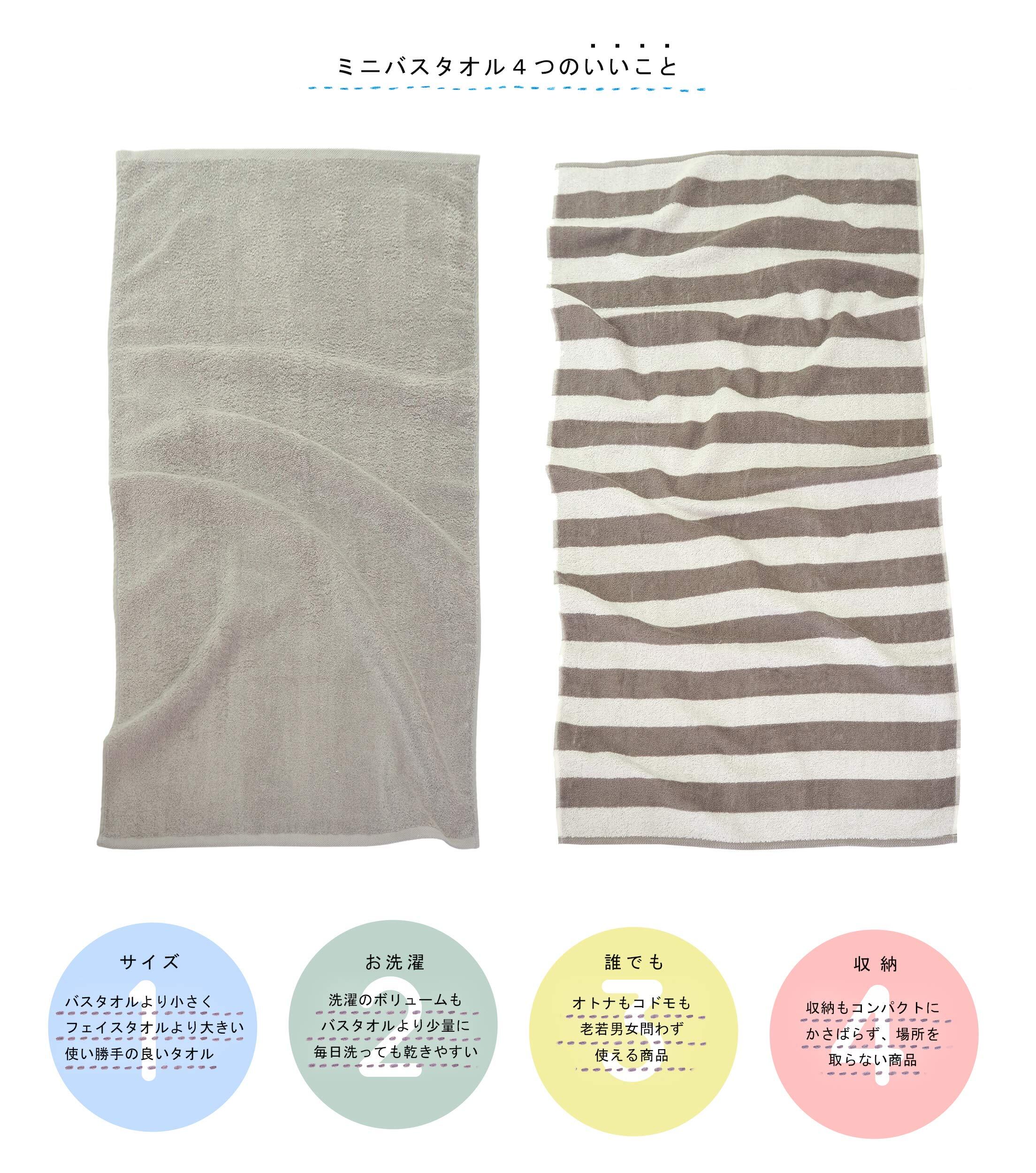 Kosugizen ミニバスタオル ボーダー&カラー グレー 50×100㎝ 小さなサイズのバスタオル デイリーユース 2枚セット ZG-502-2GY