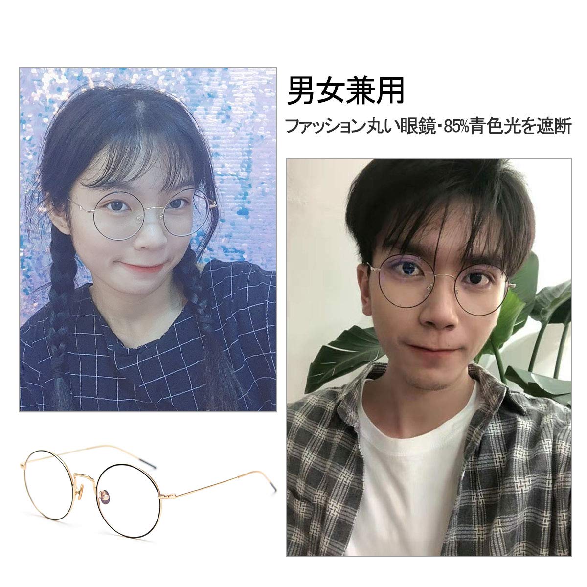 [Dollger] ブルーライトカットメガネ 伊達メガネ 15g超軽量 メガネ 度なし 丸めがね uvカット ブルーライトカット ゴールド