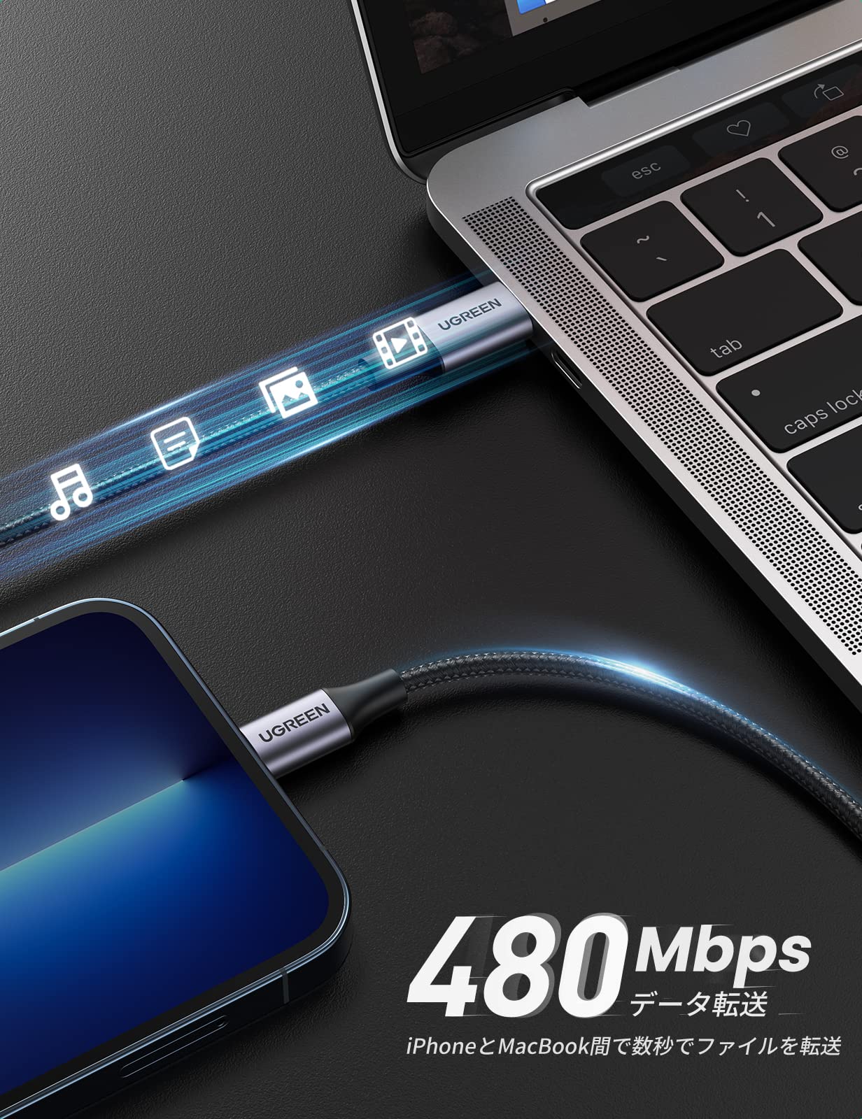 UGREEN USB-C Lightningケーブル【MFi認証取得 PD対応 1M】急速充電 ライトニングケーブル 高耐久 ナイロン編みiPhone 14 / iPhone 13/12/iPhone 11/iPhone X/iPhone 8 8 Plusなどに対応