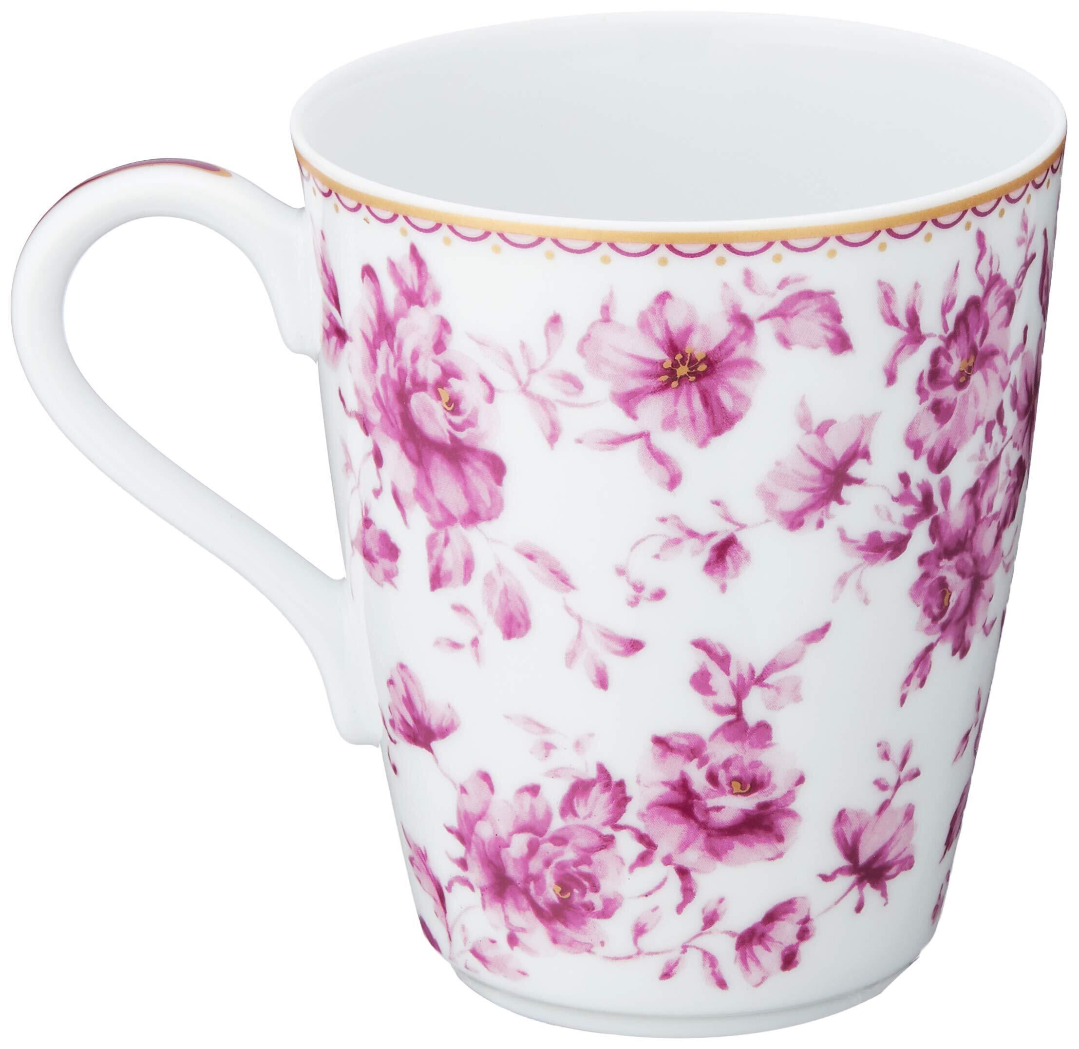 様々なシーンで活躍するマグカップ。ちょっとしたプレゼントにも最適です。白地に落ち着いた赤の花模様。