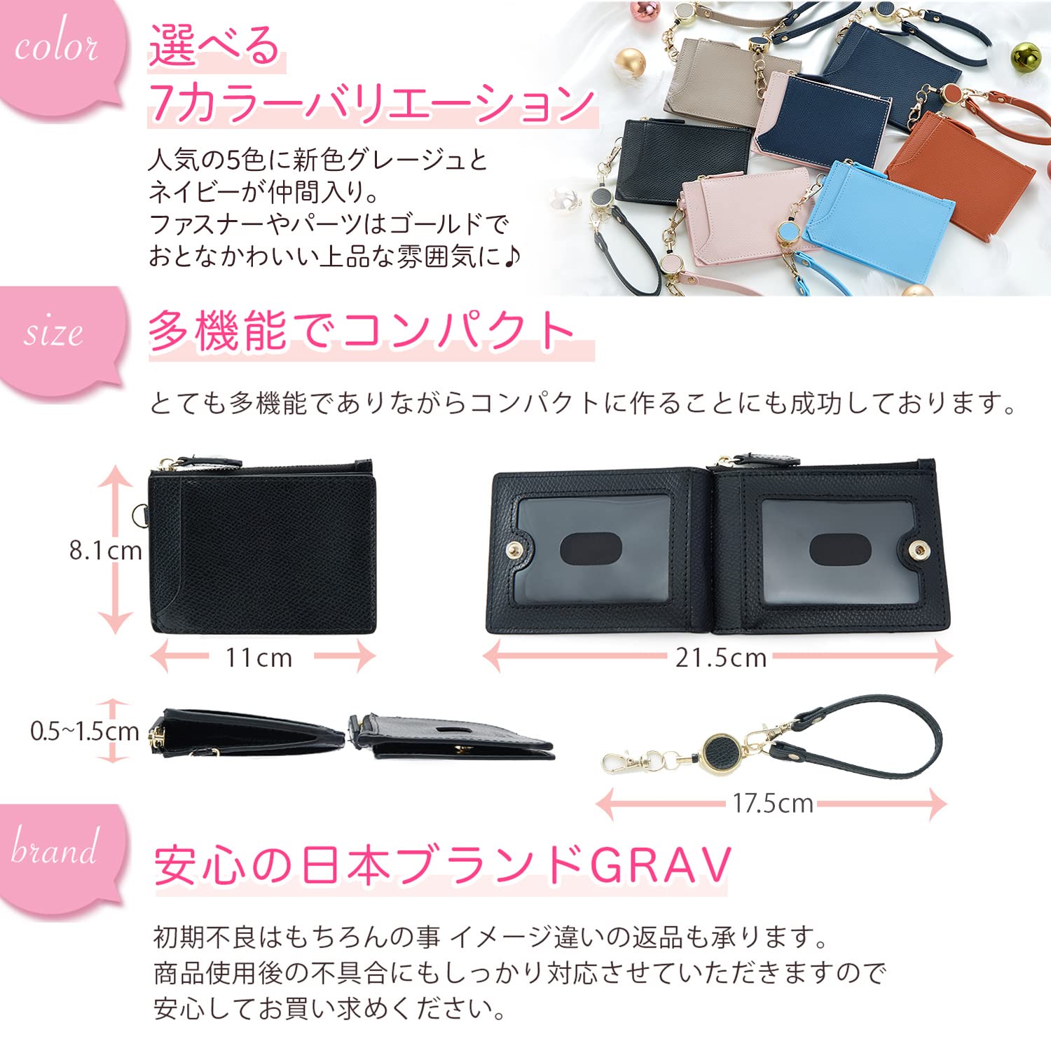 [GRAV] パスケース 定期入れ リール付き コインケース カードケース(キーチェーン ストラップ付き) / リールストラップ レディース かわいい 薄型 キーホルダー