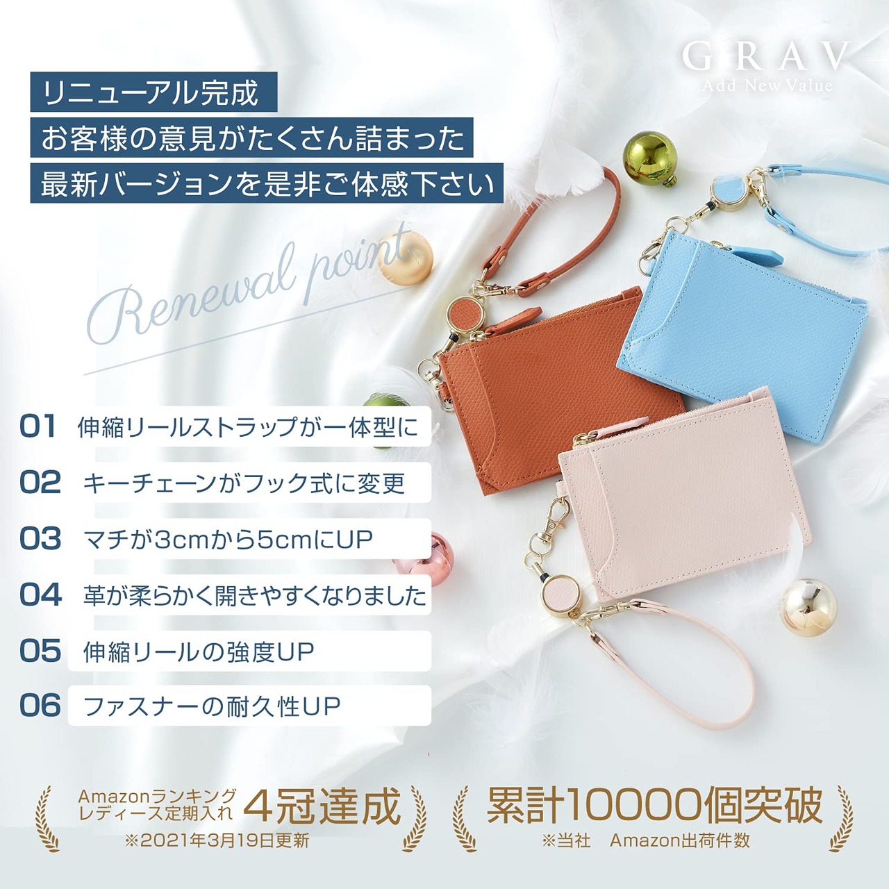 【新春セール】[GRAV] パスケース 定期入れ リール付き コインケース カードケース(キーチェーン ストラップ付き) / リールストラップ レディース かわいい 薄型 キーホルダー | asaRulu0511