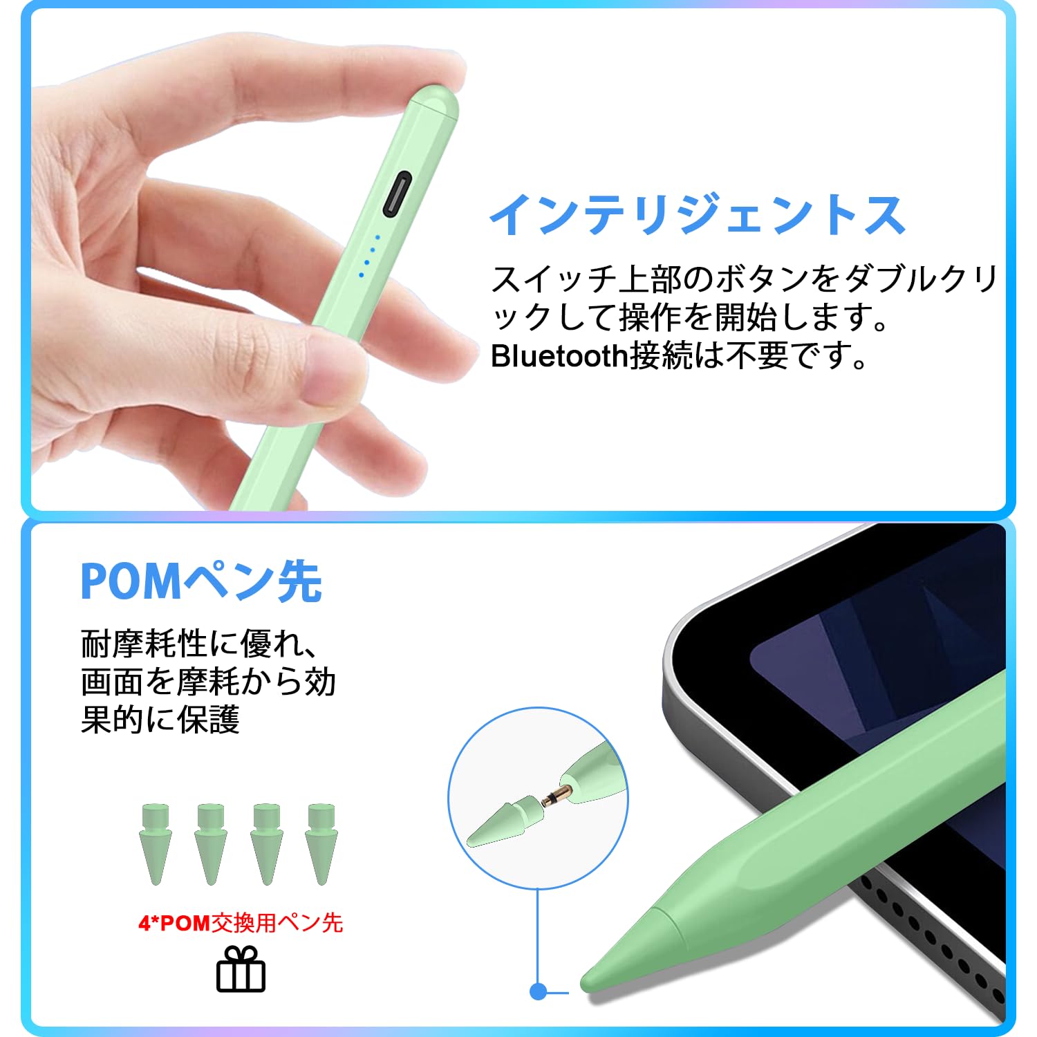 【2025新登場】タッチペン iPad ペン Type-c 充電磁気 ipad pencil スタイラスペン 傾き感知/誤作動防対応 アップルペンシル(2018-2023)iPad 6/7/8/9/10 iPad Air 3/4/5 iPad Mini 5/6 iPad Pro 11/12.9対応(グリーン)