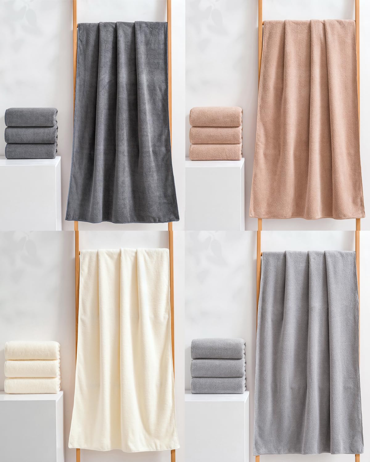 【バスタオル 4色4枚セット】サイズ:約70×140cm、重量:約300g(1枚あたり)セット内容: チャコールグレー1枚+シルバーグレー1枚+クリームホワイト1枚+サンドベージュ1枚。出張、旅行、入浴、温泉ご家族皆さんが満足できます、様々な場合で活躍。