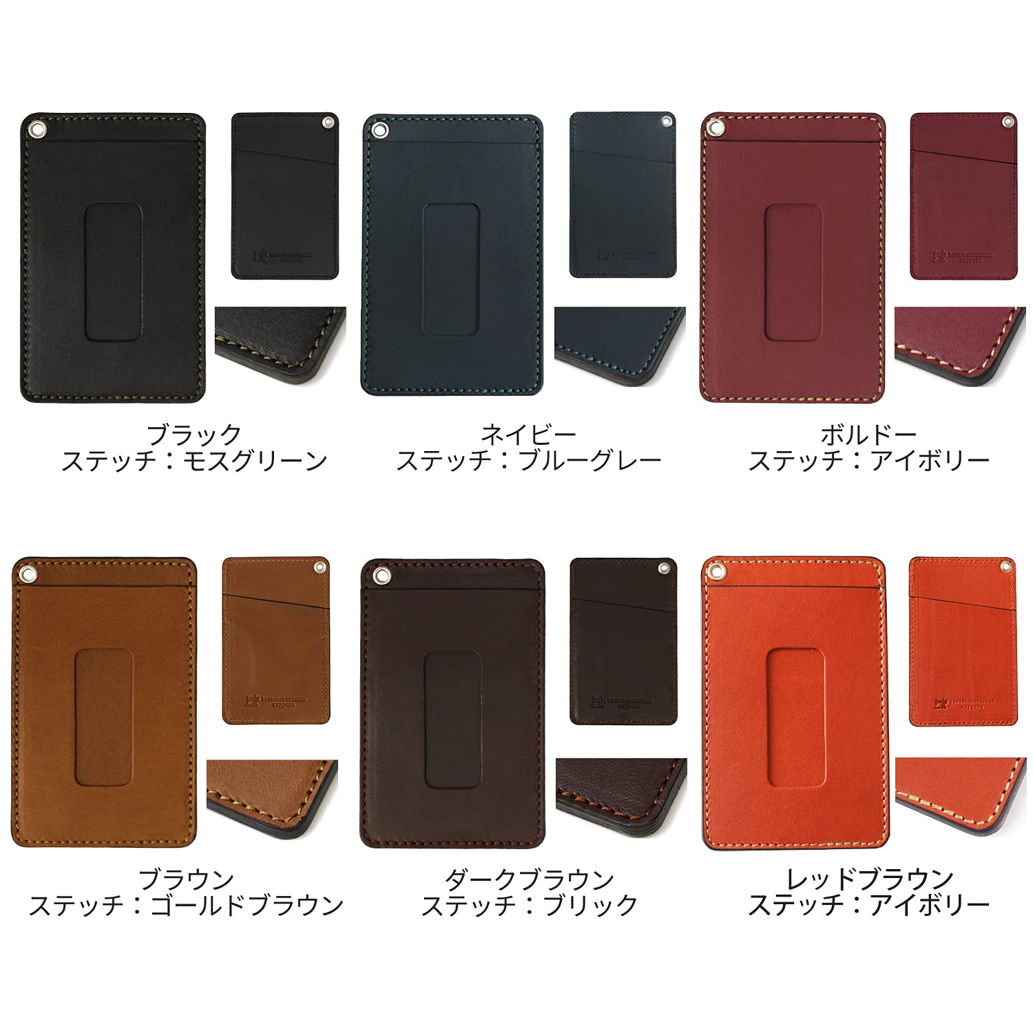 素材:牛革(オイルドレザー)、サイズ(約):縦11.0cm×横7.0cm×厚み0.5cm、重量(約):20g、機能:窓付きカードポケット×1、カードポケット×1 窓サイズ:縦5.1cm×横2.1cm