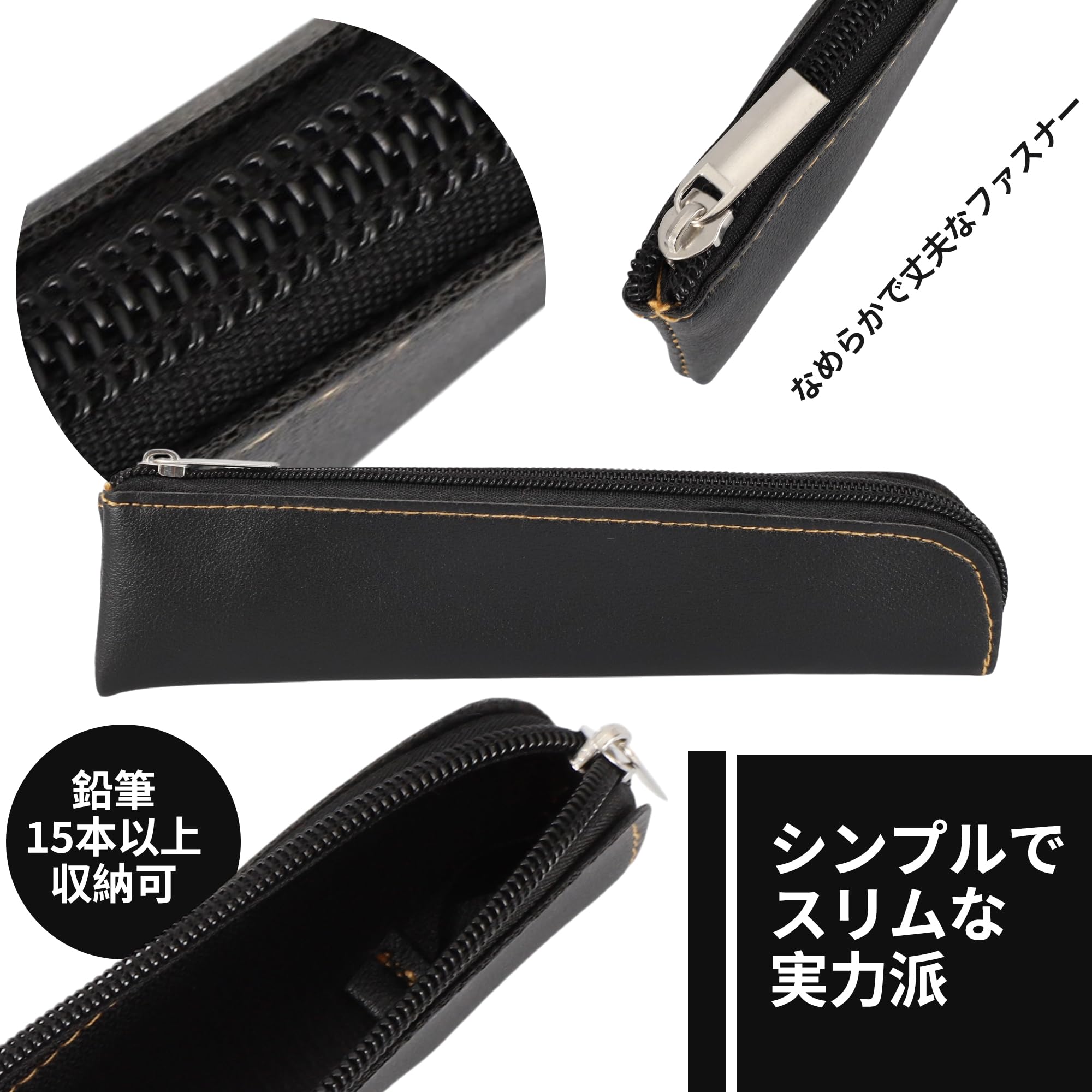 CAPASTEC ペンケース 筆箱 文房具 スリム 革 シンプル 大容量 おしゃれ 軽量 小さい ビジネス 1個入り 黒