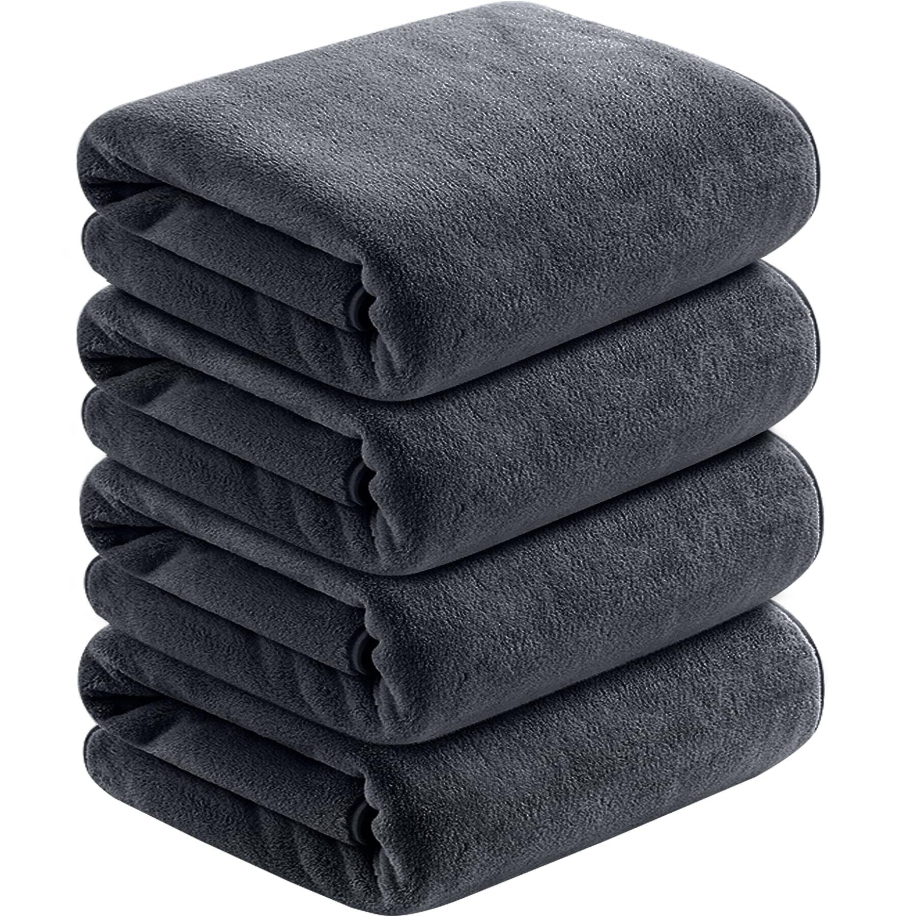 Cozyone バスタオル マイクロファイバー ふわふわ ホテル仕様 大判 60*120cm 4枚セット タオル 吸水速乾 肌触り(ダークグレー)
