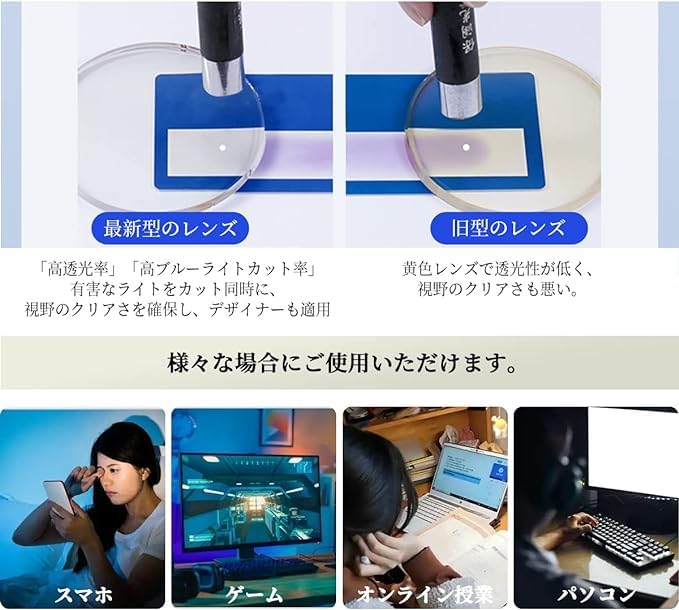 【uvカット】UVカットレンズが付いた紫外線対策メガネで、紫外線カット率は99%になる。肌を老化させ、シミ、黄斑、こじわの原因と言われている紫外線とUVをカットできる。ブルーライトカットメガネはもちろん、紫外線カットメガネとしてもお勧めます。