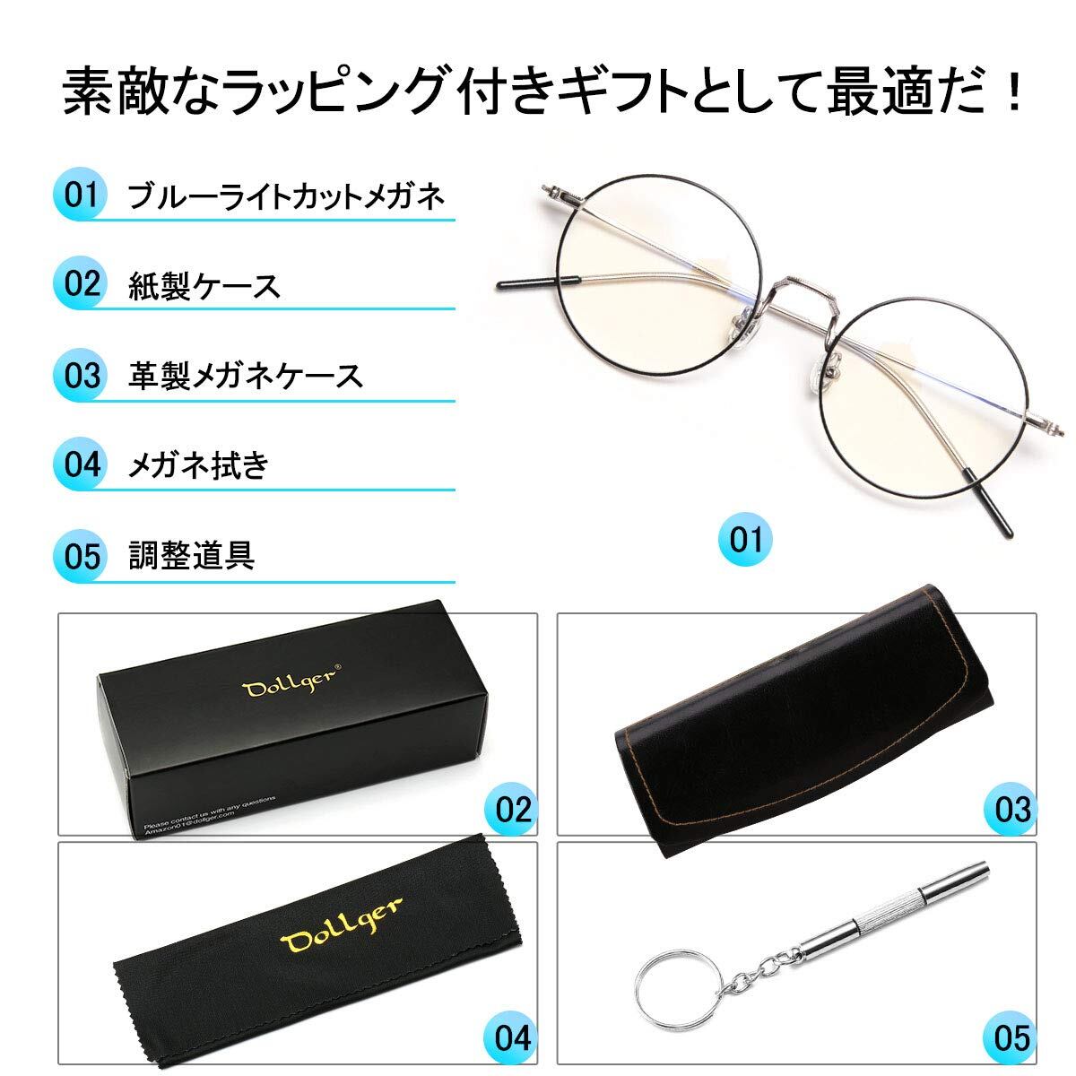 Dollger ブルーライトカットメガネ だてめがね メンズ オシャレ 伊達メガネ 18g 丸メガネ uvカットメガネ 度なし メガネ