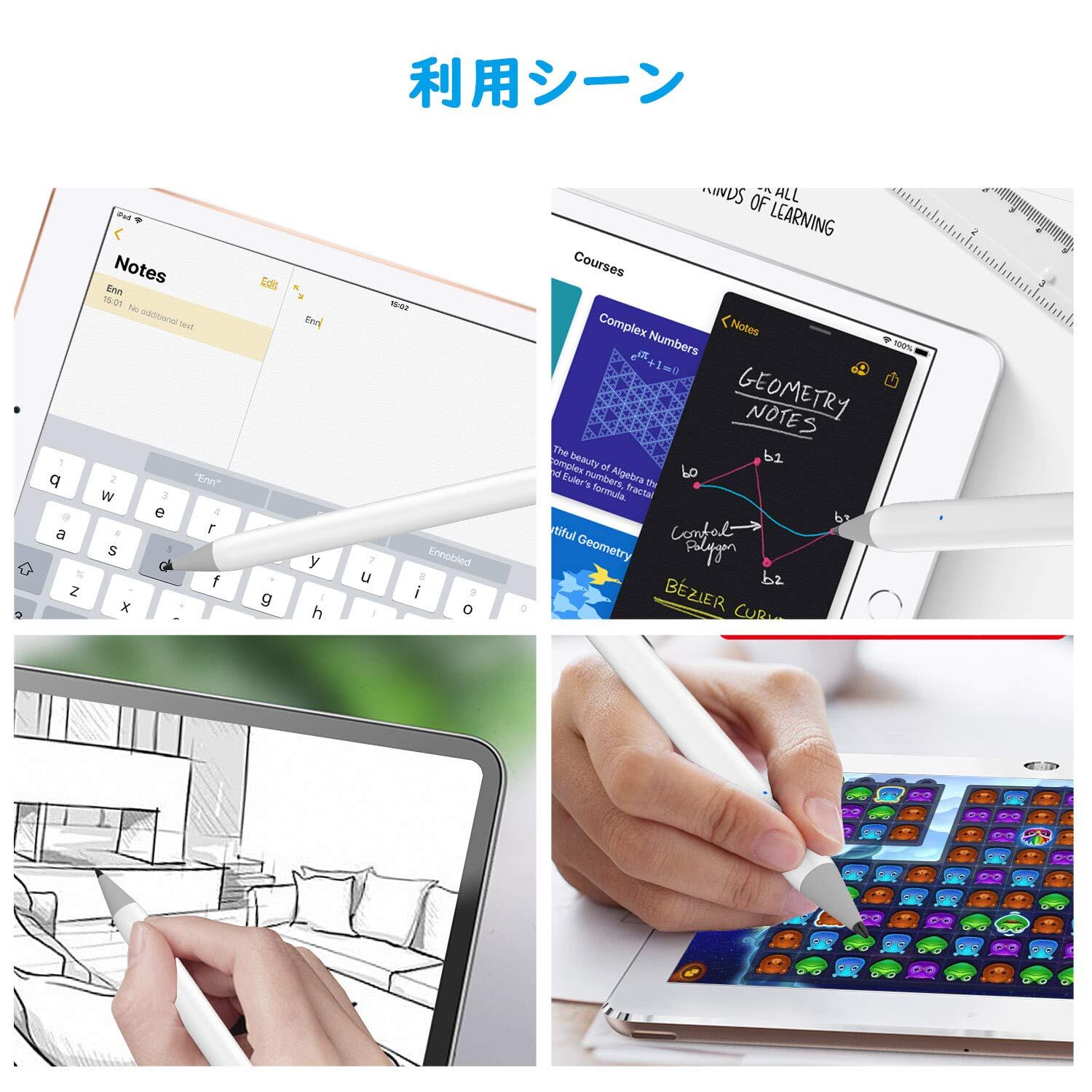USGMoBi タッチペン iPad対応 ペンシル パームリジェクション搭載 オートスリープ機能 高感度 1mm極細ペン先 遅れなし USB充電式 スタイラスペン iPad(第6/7/8/9/10世代)/iPad mini5/iPad mini6/iPad Air3/iPad Air4/iPad Air5/iPad Pro等 2018年以降iPad機種に対応 ホワイト
