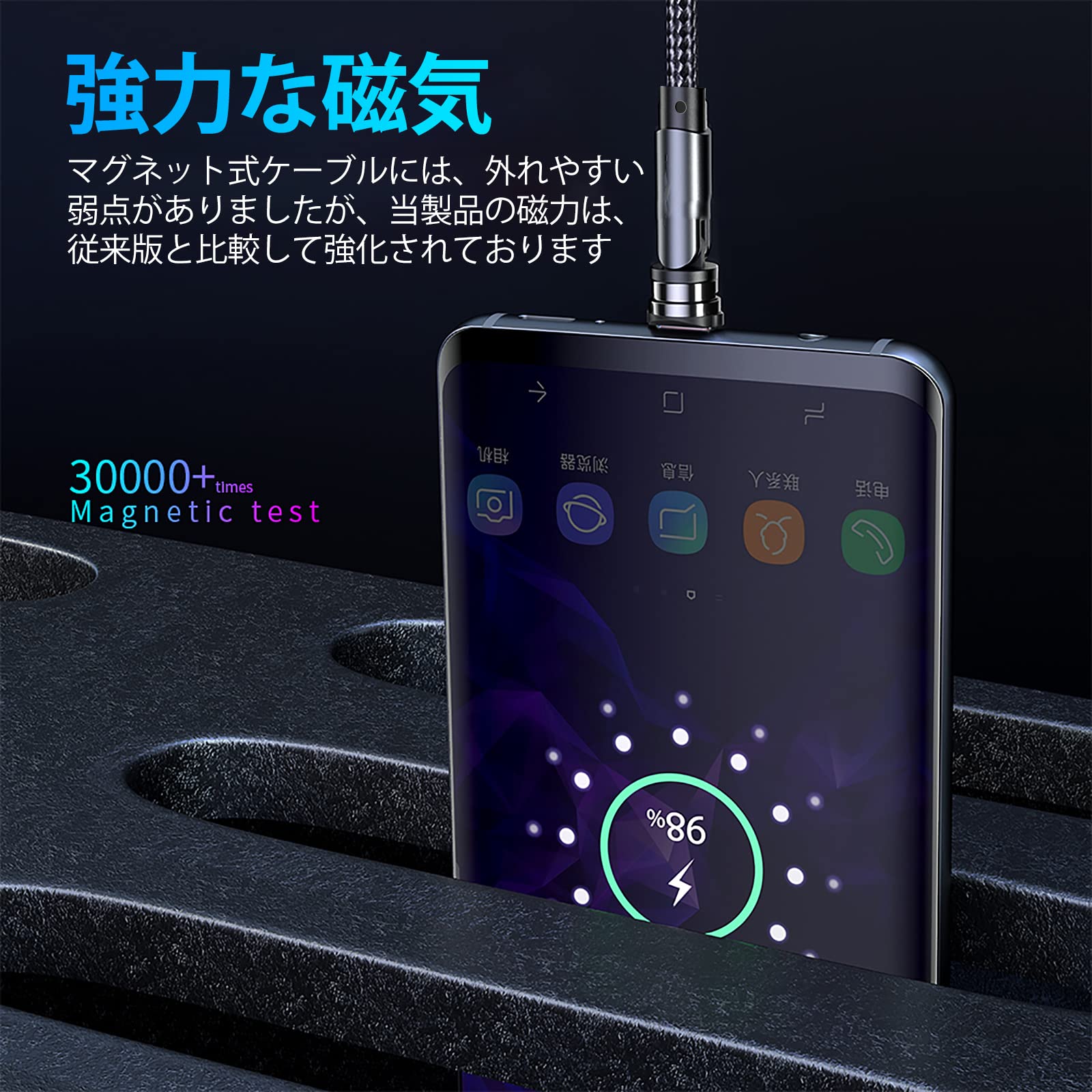マグネット 充電ケーブル SUNTAIHO 3-in-1 USBマグネット式ケーブル 【4本(1M+1M+2M+2M)】360度+180度回転 磁石 磁気 防塵 着脱式 ライトニグ マイクロUSB Type-C コネクタ 快速充電器 android 等対応 - DZCX - ブラック