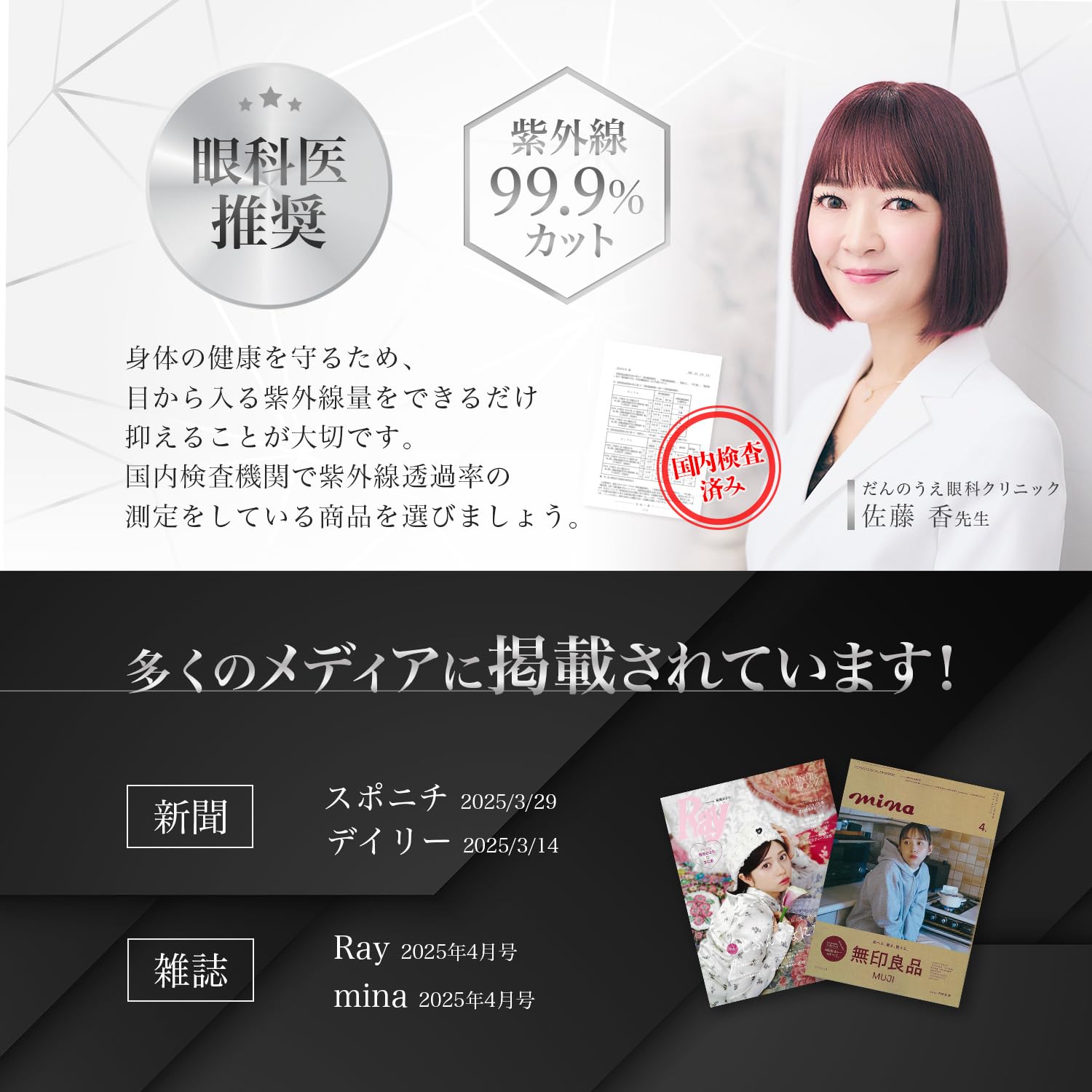9層レンズ構造により、UV400、偏光機能、TACレンズ、傷防止機能を実現しました。