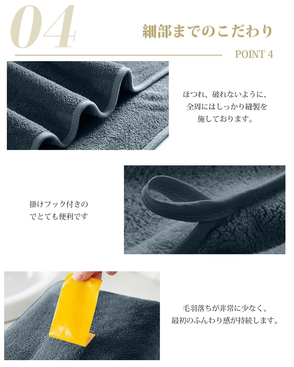 【コスパが良い】 このバスタオルは髪の毛の1/100のサイズのマイクロファイバー(極細繊維)で作られています。通常より細い系でパイルを長く織り上げ、纎細な柔らかさに仕上げました。シルクのような独特の光沢感としなやかさがあります。普通のバスタオルより2倍の厚みで、より高密度なマイクロフアイバー生地を使用して、洗濯を繰り返しても変形しなせず、色褪ぜす、ボリューム感が保たれます。快適な状態で長くお使いいただます。